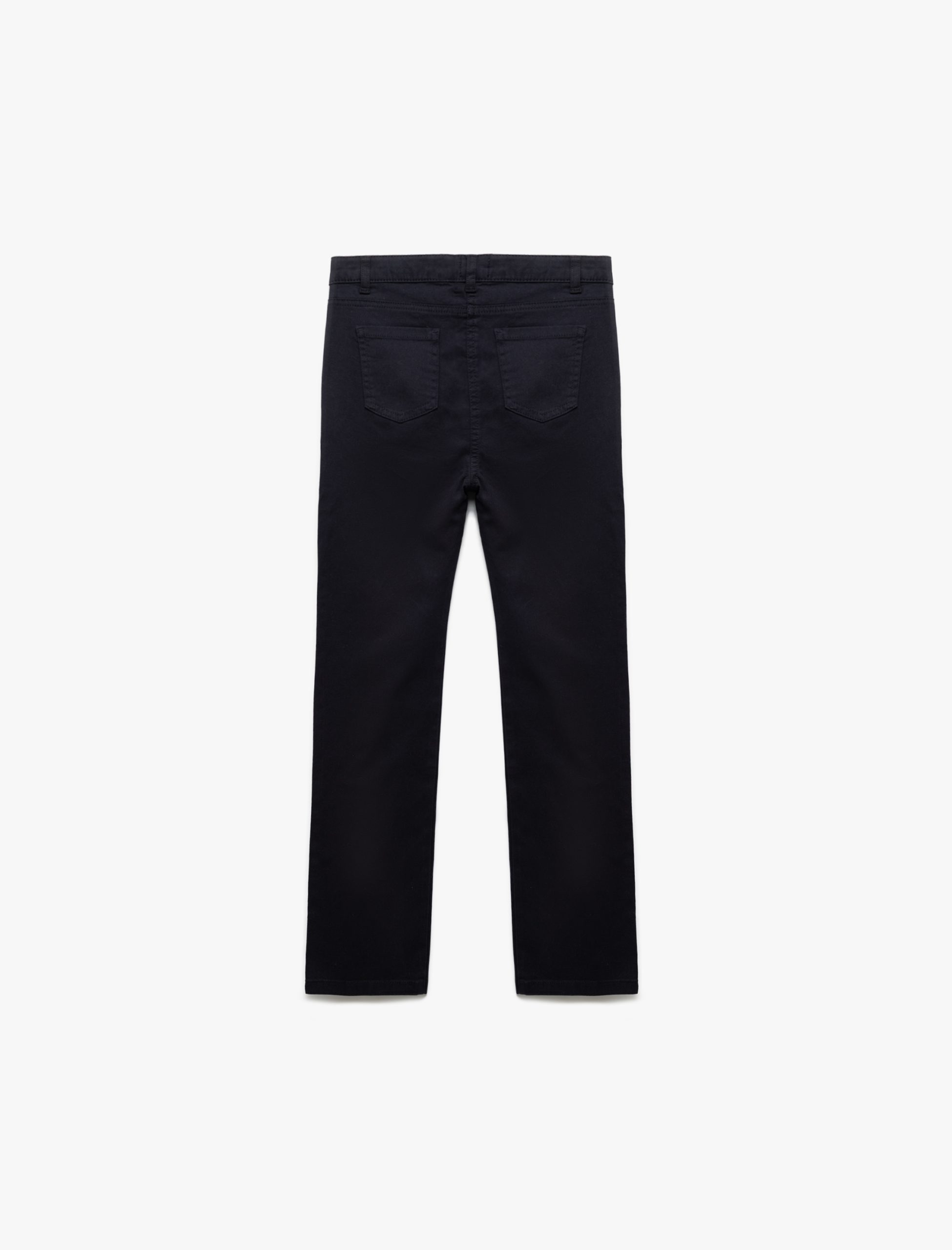 بنطلون قطني مستقيم الساق بتفاصيل أزرار وجيوب. الخارج: ٩٨٪ قطن، ٢٪ إيلاستان