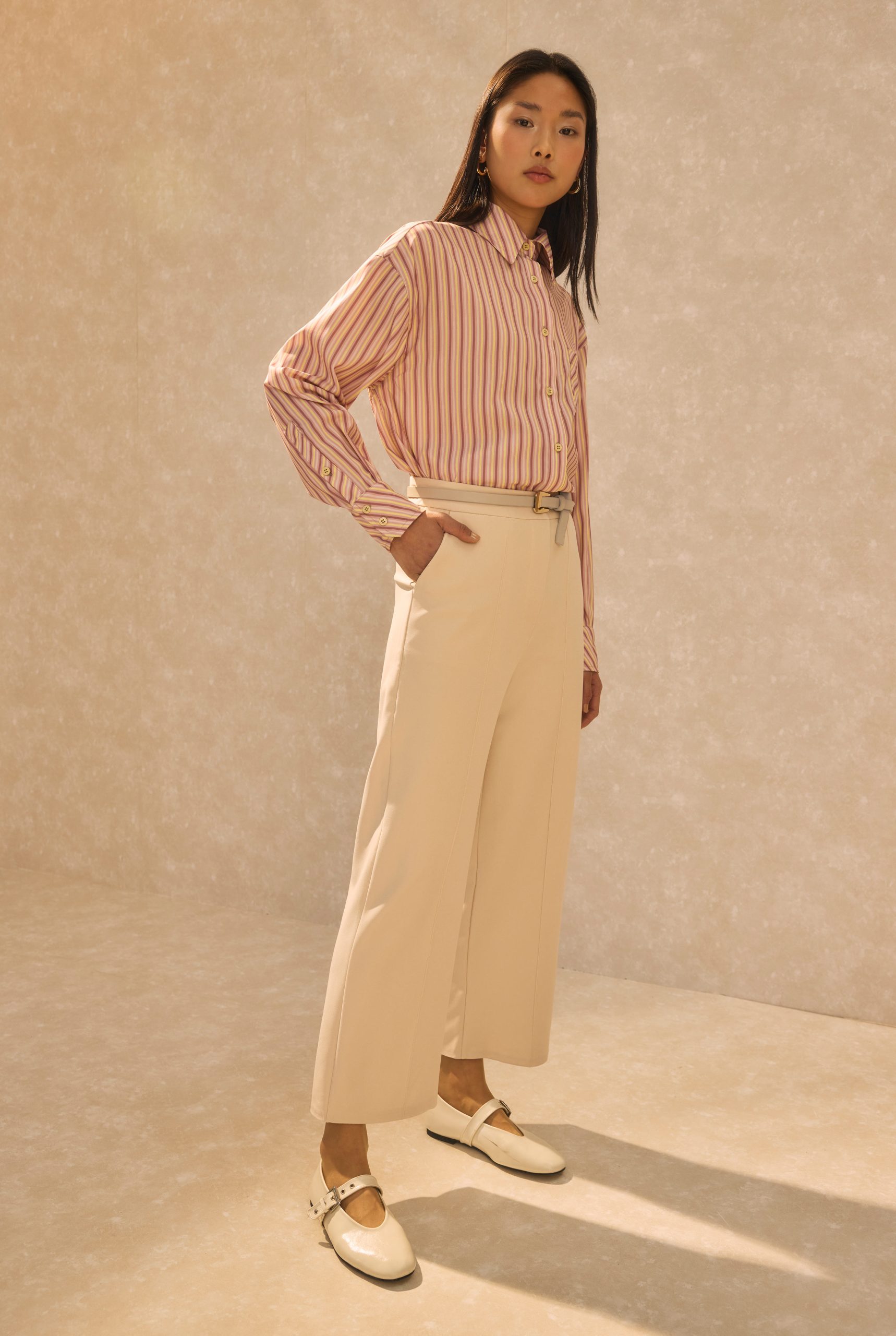 يتميز البنطلون الميدي المزود بتفاصيل مضلعة بملاءمة حقيقية للحجم. نوصي باختيار مقاسك المعتاد. يتم توفير تفاصيل القياس أدناه، ويمكنك مقارنتها ببنطلونك المفضل لضمان الملاءمة المثالية.