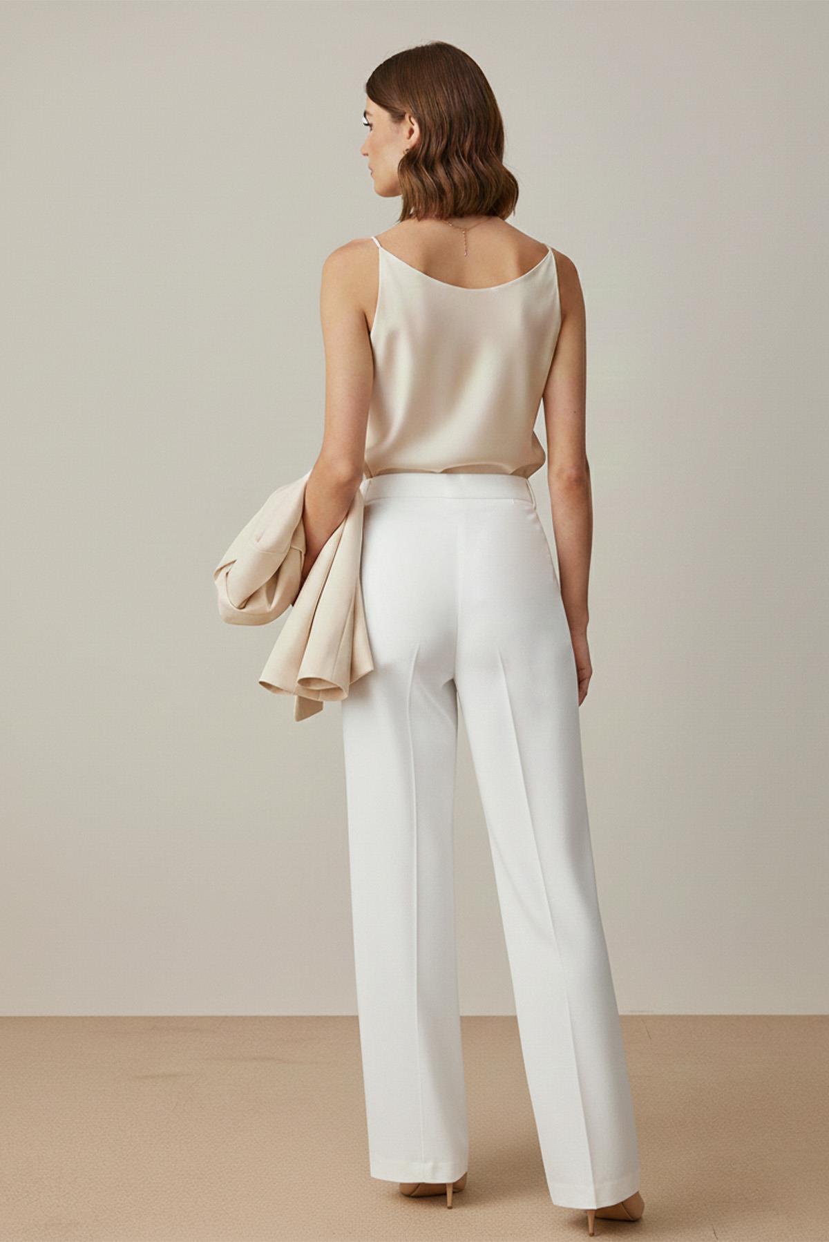 بنطلون نسائي عالي الخصر واسع الساق من القماش -18289PNT – لون إيكرو