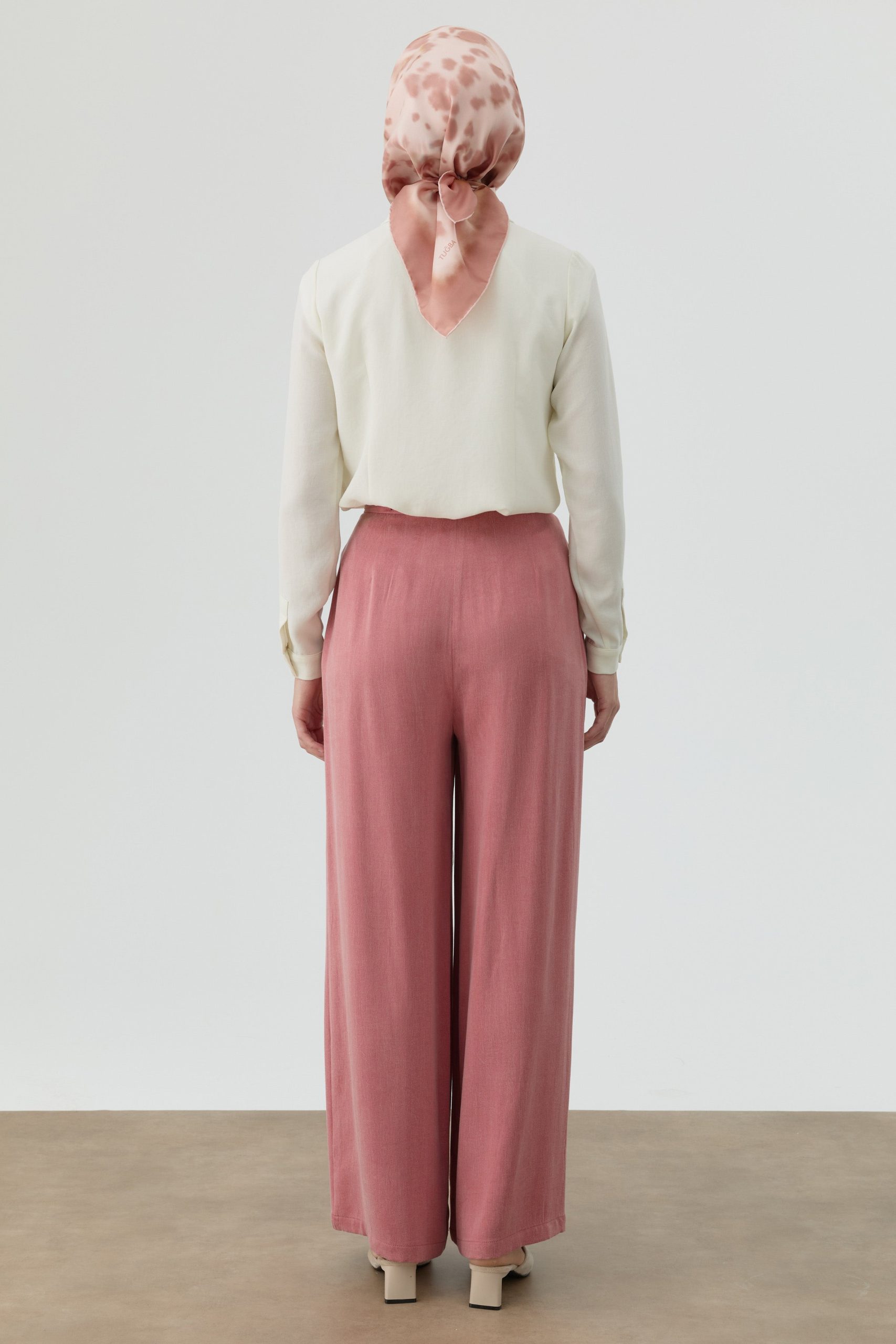 بنطلون واسع الأرجل بحزام – وردي باهت