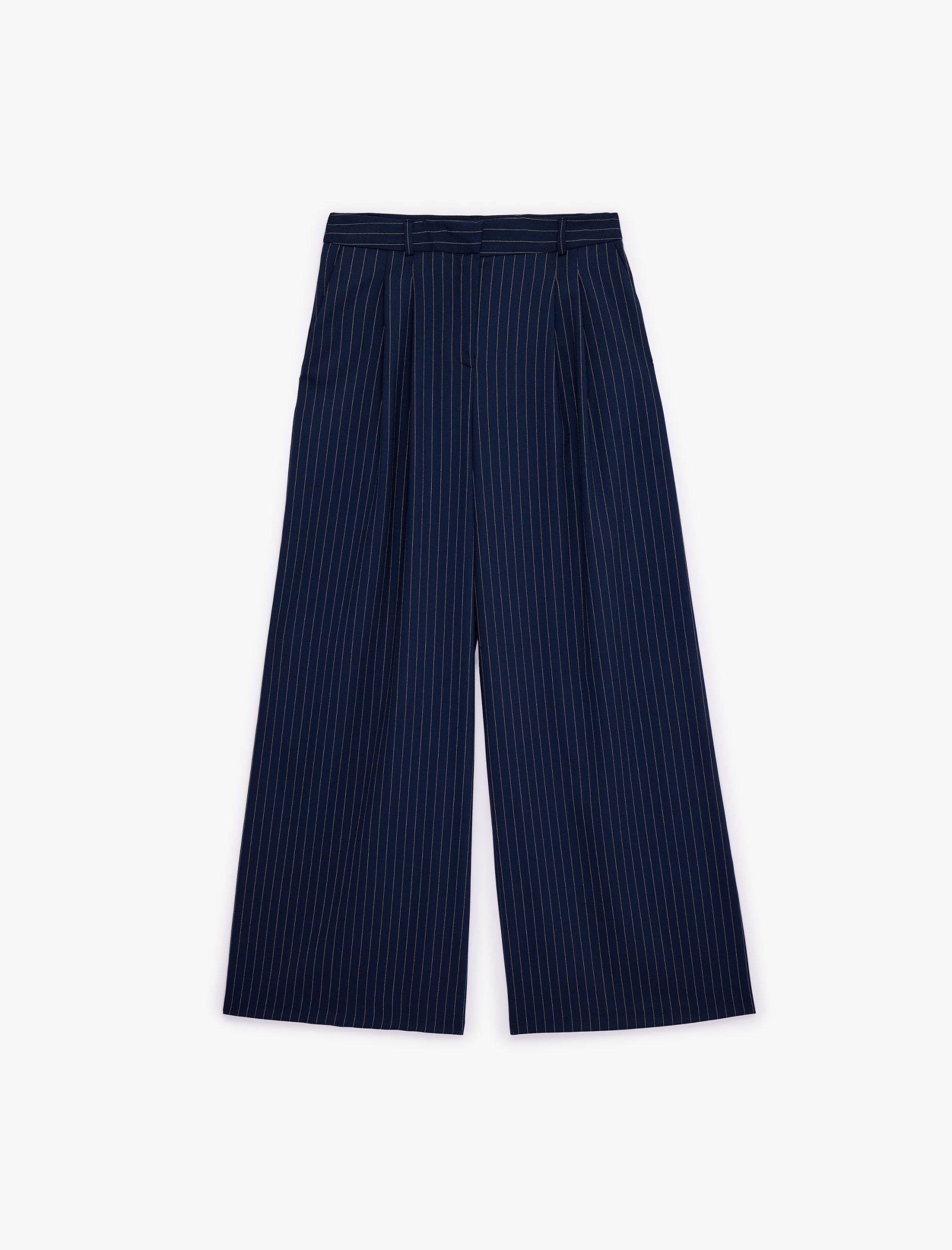 بنطلون واسع الأرجل مخطط بتفاصيل جيوب وتضليعات