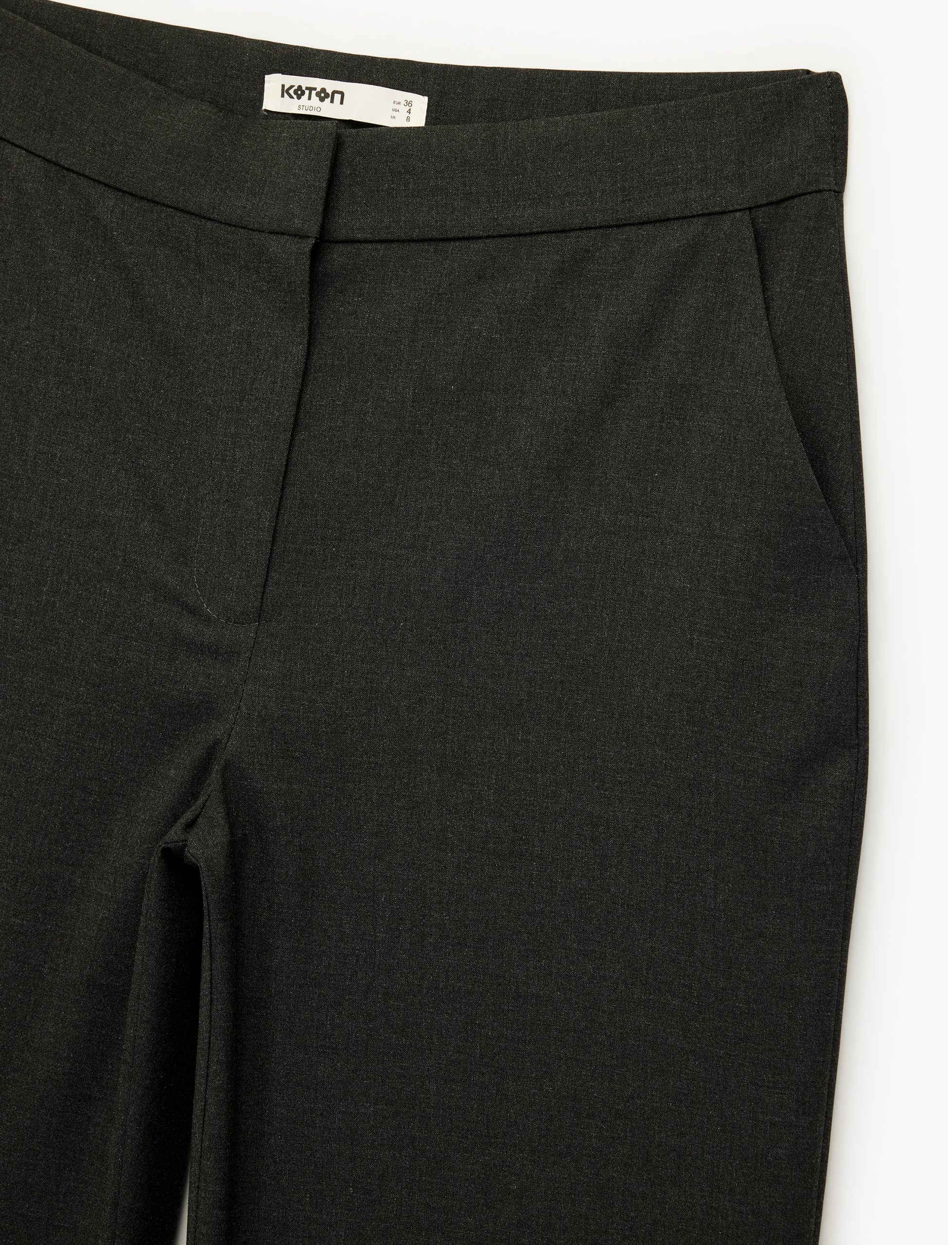بنطلون واسع الساقين عالي الخصر بتفاصيل جيوب ومزيج فيسكوز