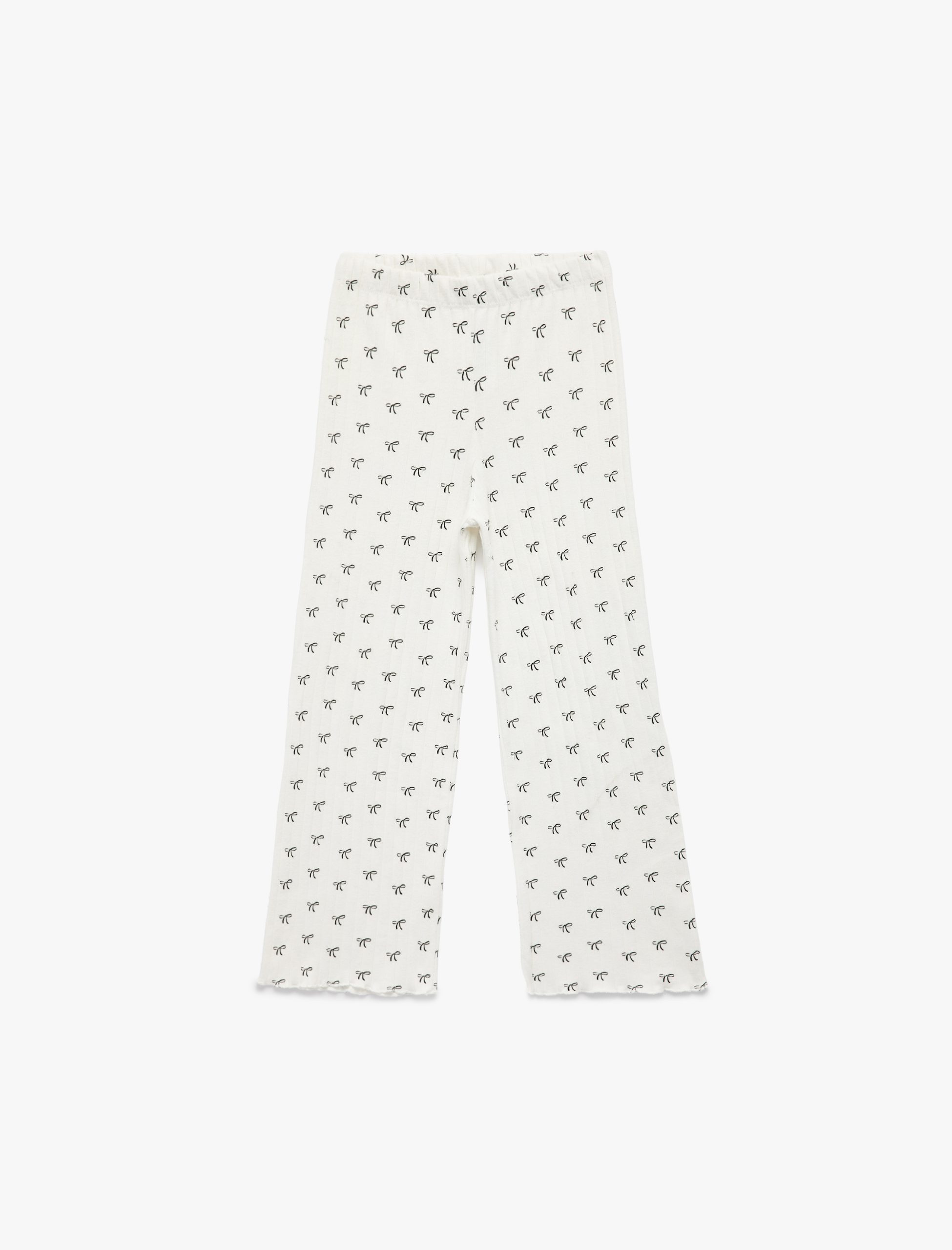 يقدم هذا البنطلون الواسع الساق المطبوع تجربة ارتداء مريحة بفضل قماش الجيرسي الناعم. مع طباعته الجميلة وبنائه عالي الجودة، سيكون بالتأكيد المفضل لدى الصغيرات. تصميم الخصر المطاطي يوفر الراحة خلال الأنشطة اليومية. خيار مثالي لمن يبحثون عن أسلوب مرح ومريح في نفس الوقت.
