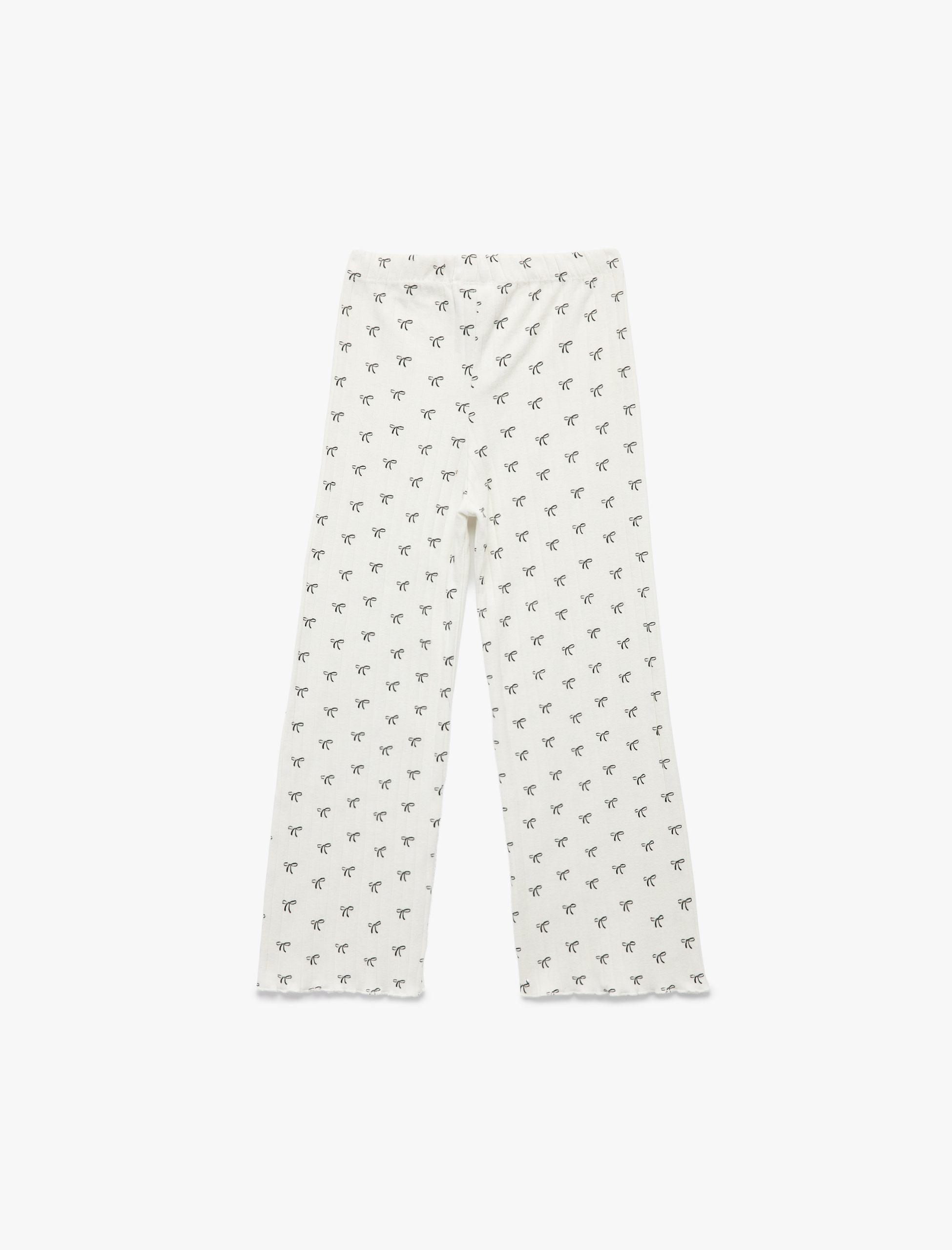بنطلون واسع الساق للفتيات من خليط الفيسكوز مطبوع بربطة عنق وخصر مطاطي