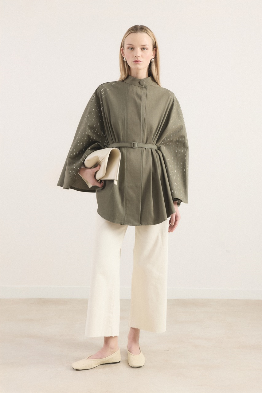 يبرز هذا البونشو بقوام الجينز العصري وتفاصيله الجذابة، مما يضيف لمسة جريئة إلى أسلوبك. تعطي تفاصيل الزينة بالحجارة للمنتج مظهرًا مشرقًا، بينما يشدد الحزام المطلي على خط الخصر لخلق صورة ظلية أنيقة. تبرز تفاصيل الزر المطلي على الياقة كعنصر مكمل للتصميم. يمكن اختياره بكل راحة لكل من الملابس اليومية وتجارب الأسلوب الخاصة.