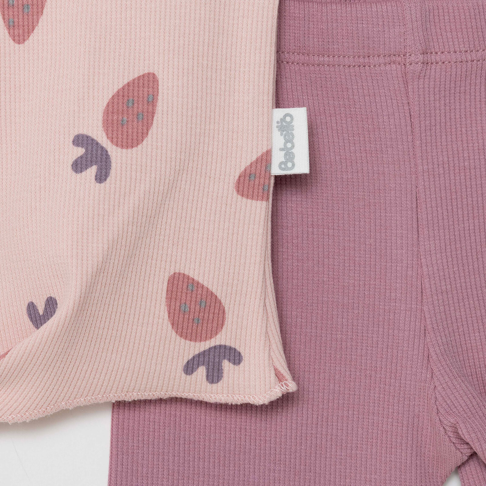 بيبيتو، فتاة، مجموعة تي شيرت وبنطلون ضيق، طباعة فواكه، فراولة، رقبة مستديرة، أكمام طويلة وقصيرة