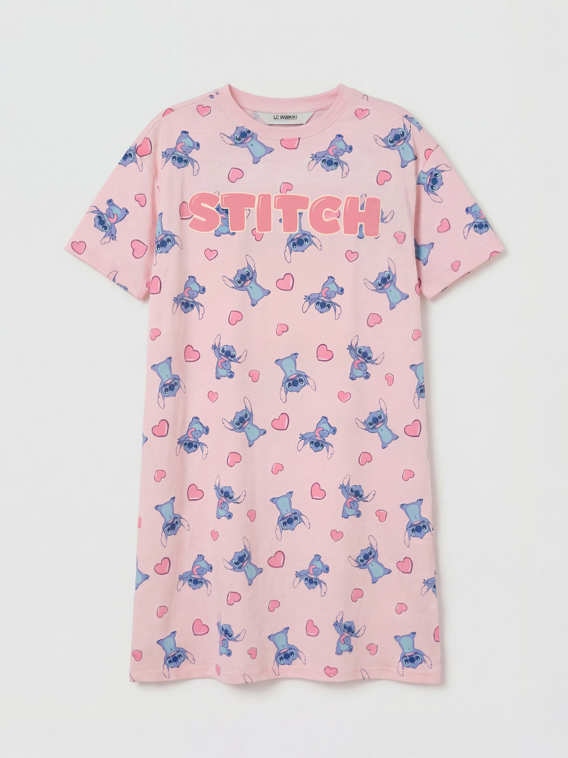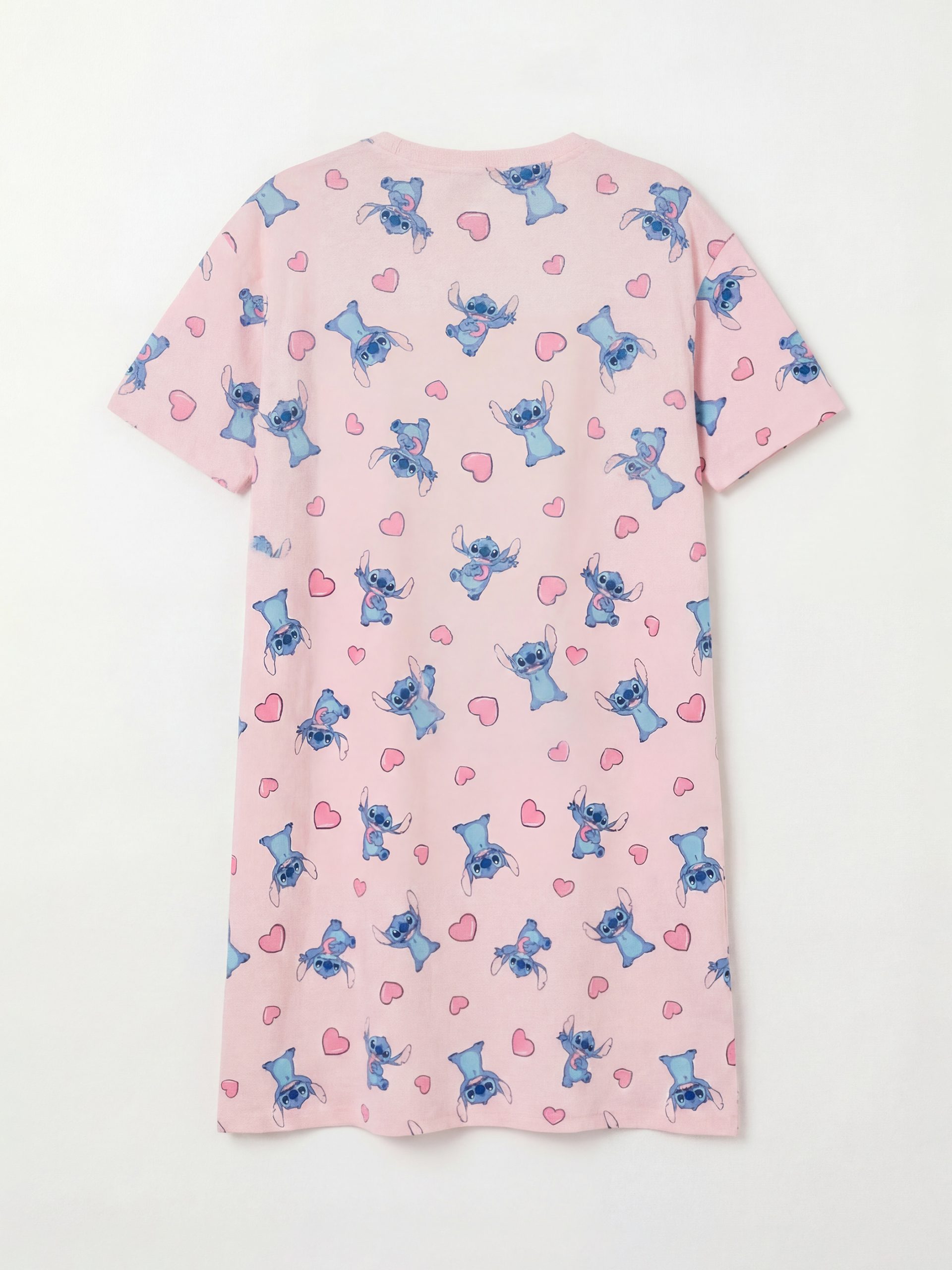 العلامات: cotton pajamas, girls nightwear, kids sleepwear, pink nightgown, stitch print