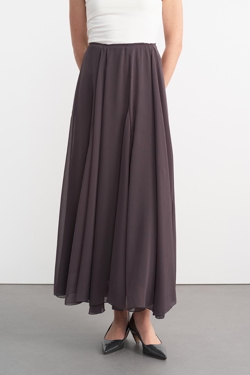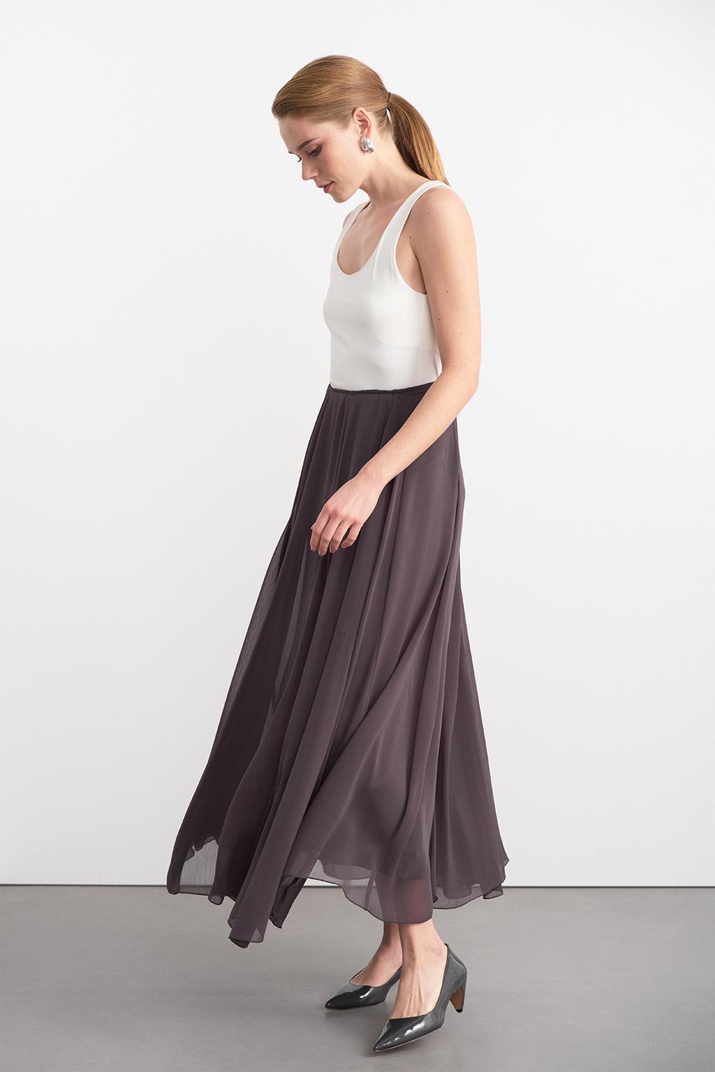 تنورة إيفا الطويلة المطبقة باللون الأنثراسايت