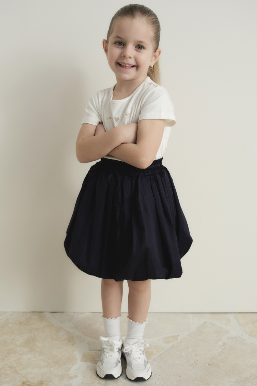 تنورة بالون من قماش الساتان القطني المدمج – أزرق داكن