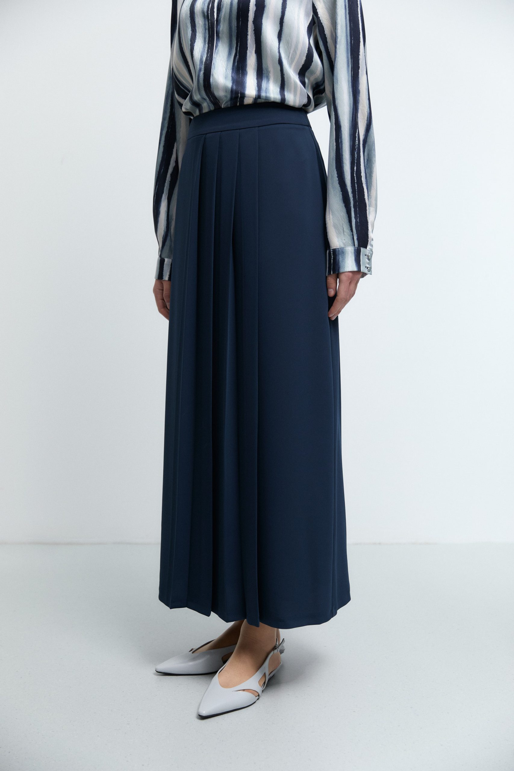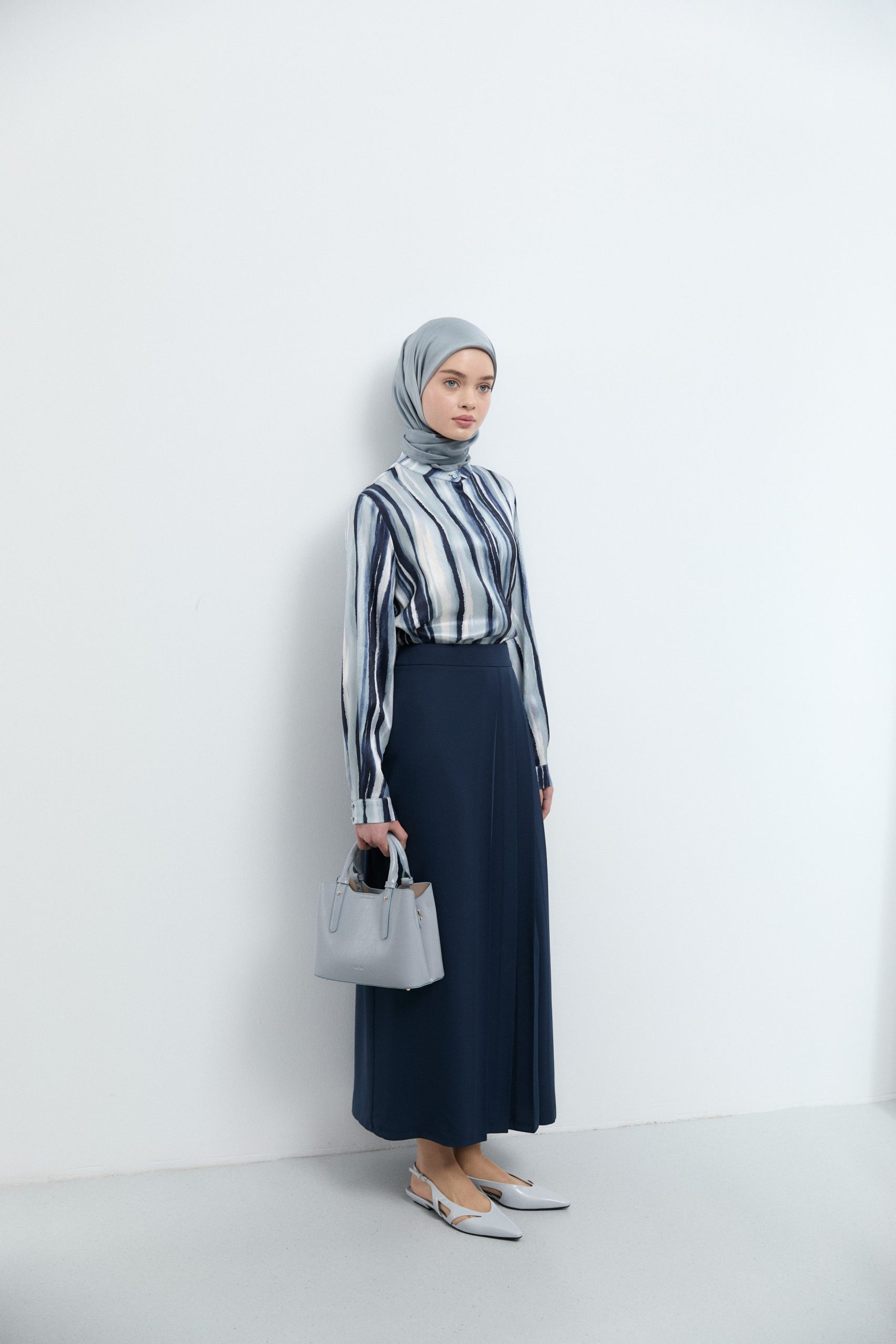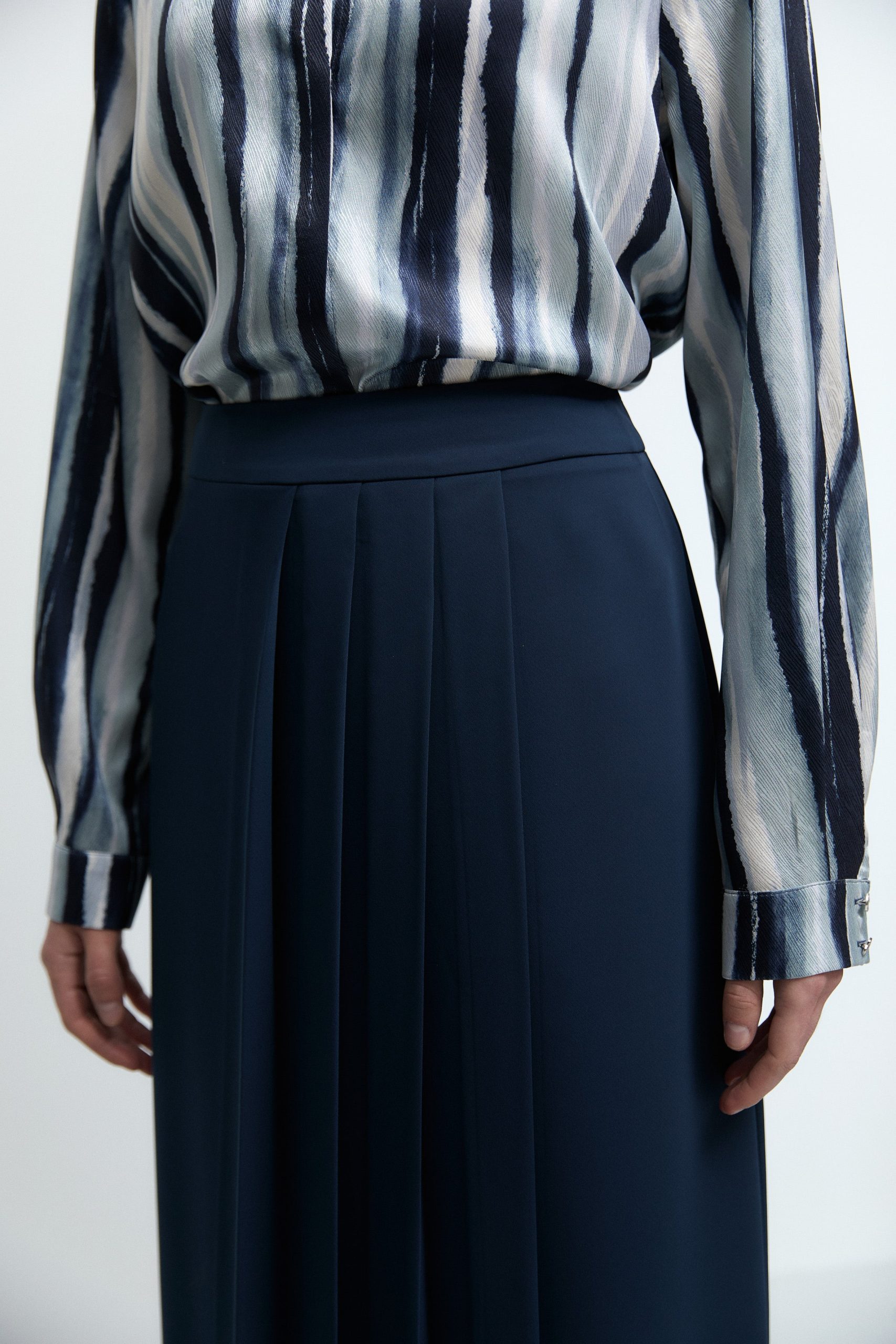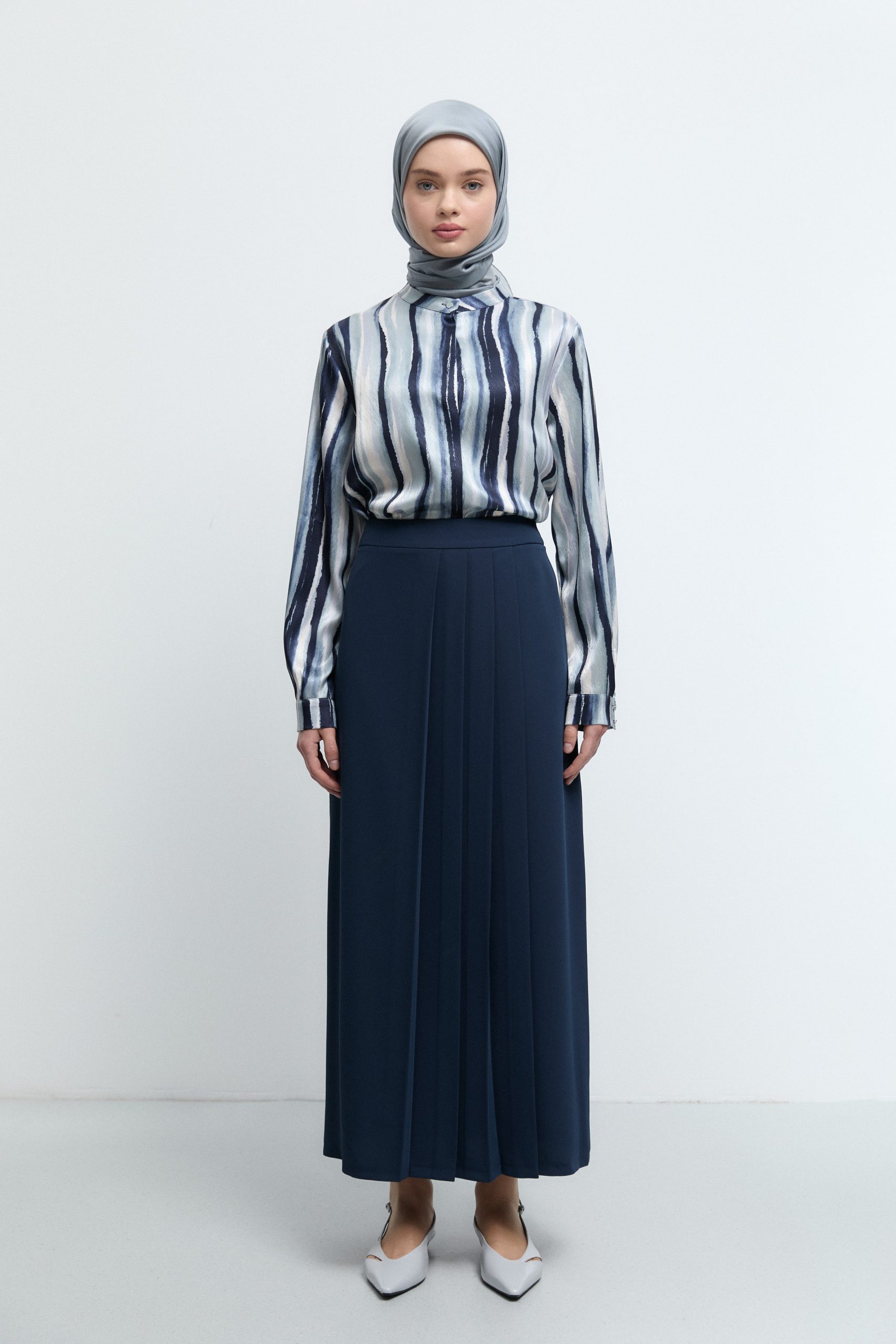 تنورة بتفاصيل طيات أمامية – أزرق بحري