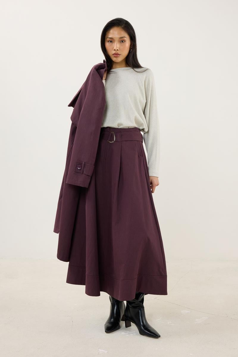 تنورة بالون ذات وسط متوسط، ومطوية، وسحاب خفي من الخلف، وجيوب جانبية، مصنوعة من قماش ممتاز متماسك الحجم لا يظهر ما بداخله وبدون بطانة.