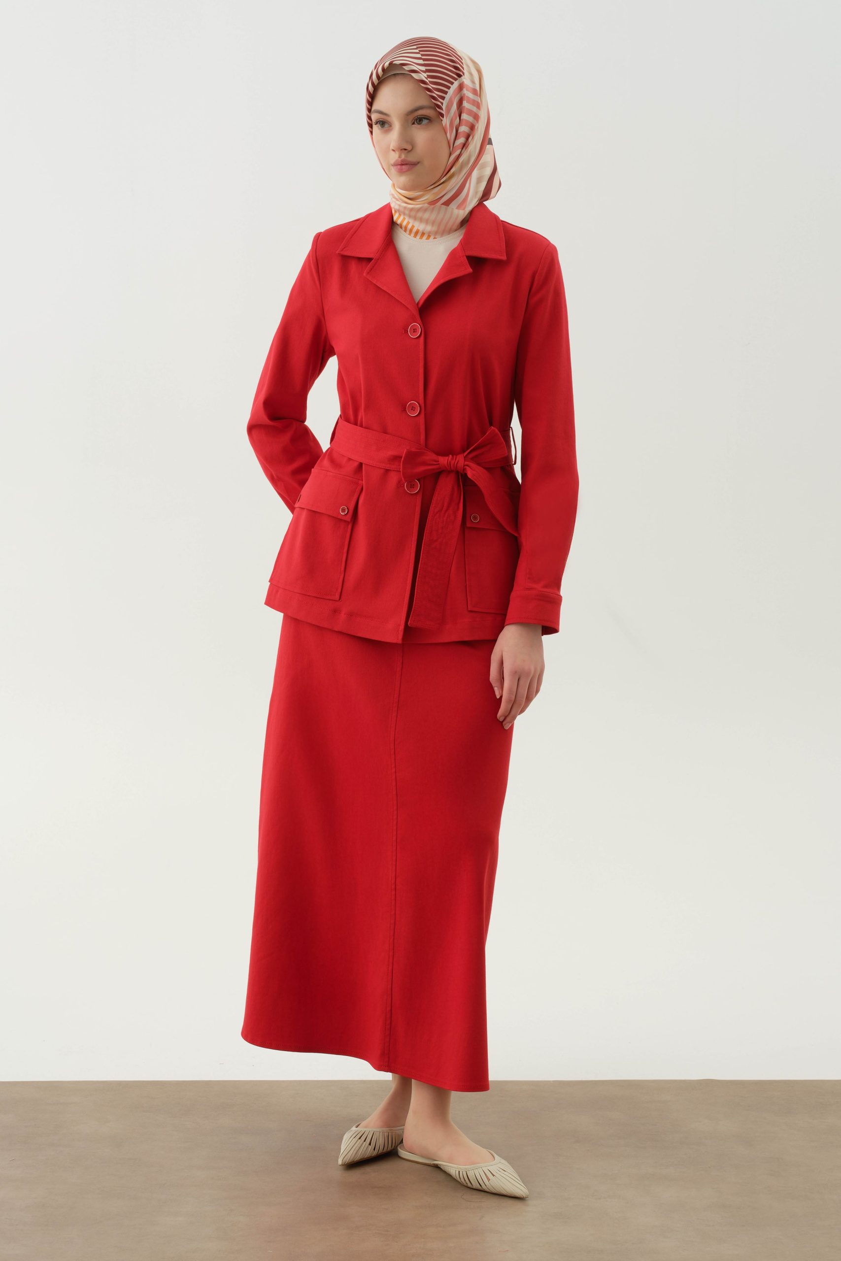 تنورة بخمس جيوب – لون مرجاني