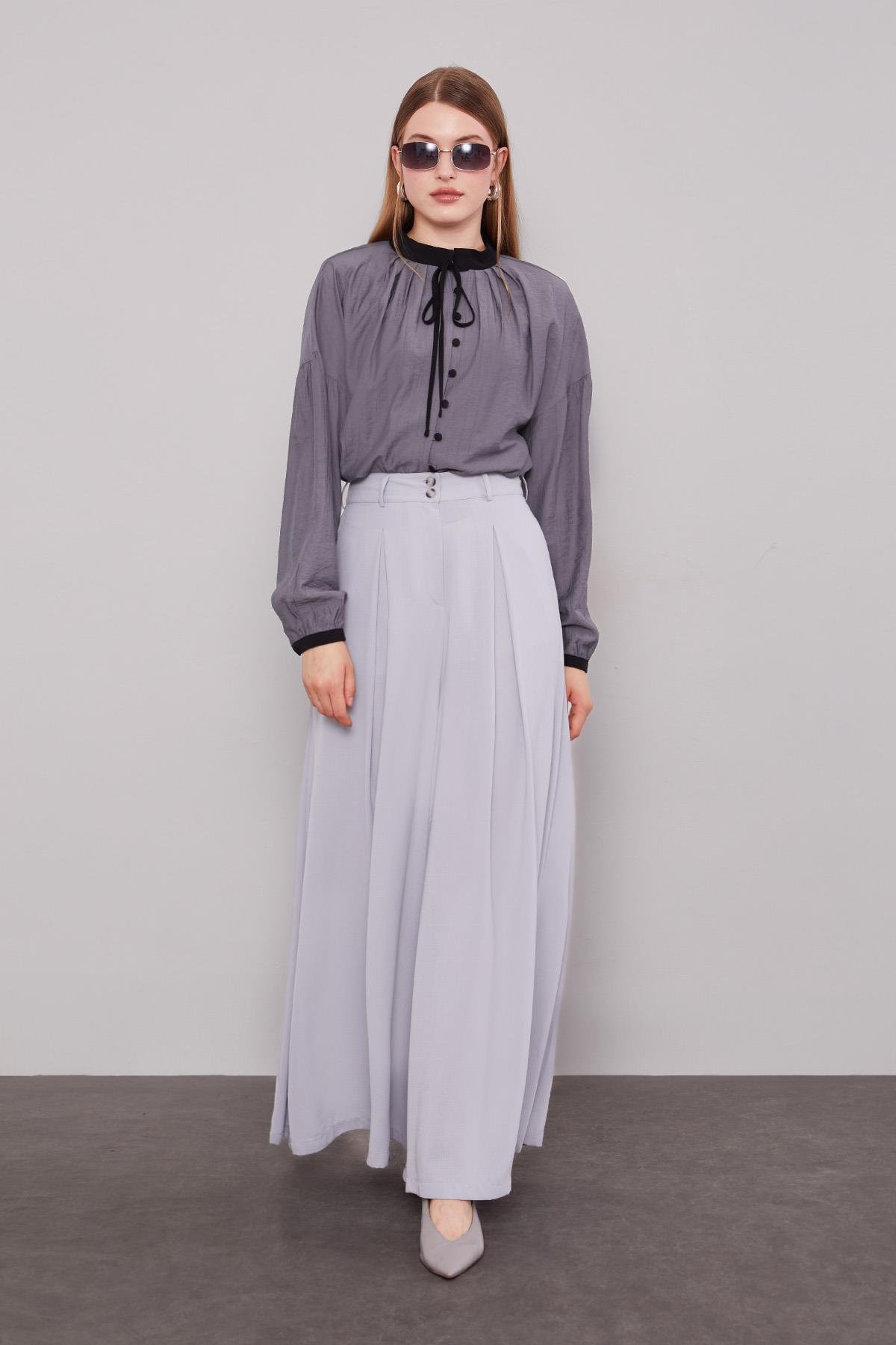 تنورة بنطلون رمادية واسعة الأرجل مع طيات