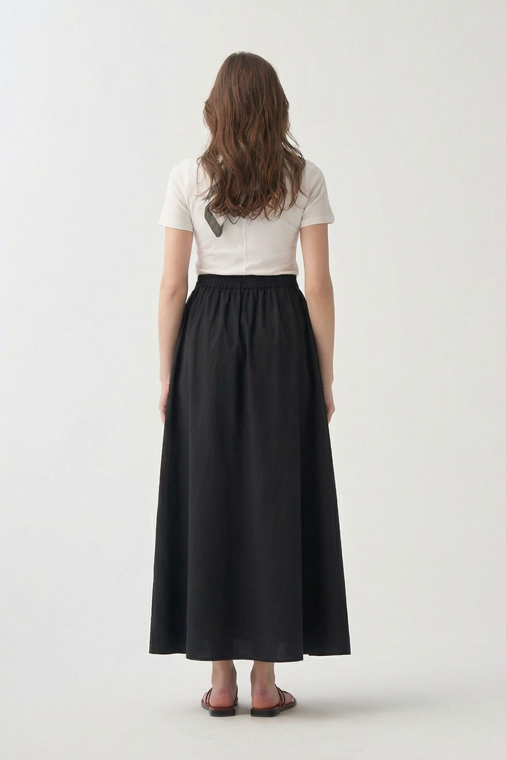 تمتعي بمظهر أنيق وجذاب مع تنورة البوبلين السوداء المصممة خصيصًا لمن يبحثن عن الأناقة في التفاصيل. تصميم مثالي للتركيبات اليومية والمناسبات الخاصة.