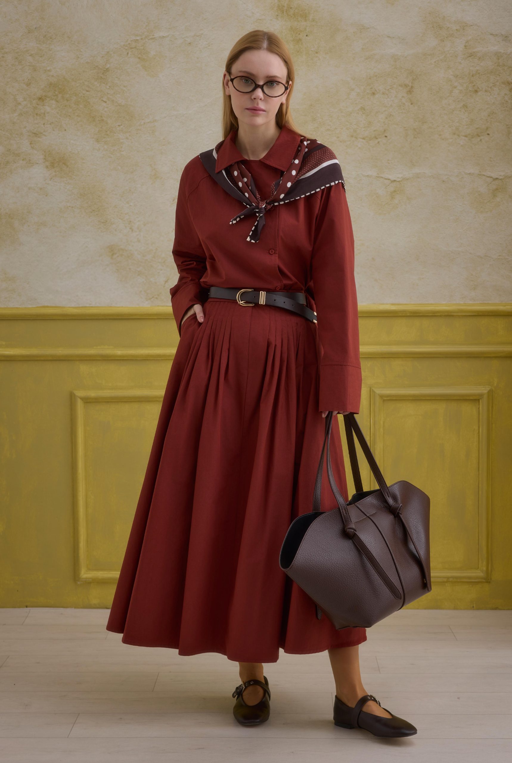 مواصفات تنورة البوبلين القطنية البورجوندية ذات الخصر المطاطي