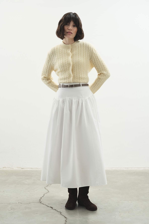 مميزات التنورة البيضاء الطويلة من القطن بتصميم A
