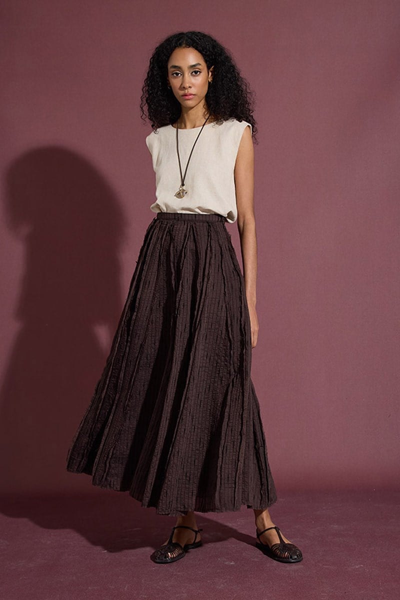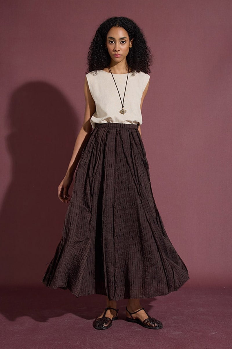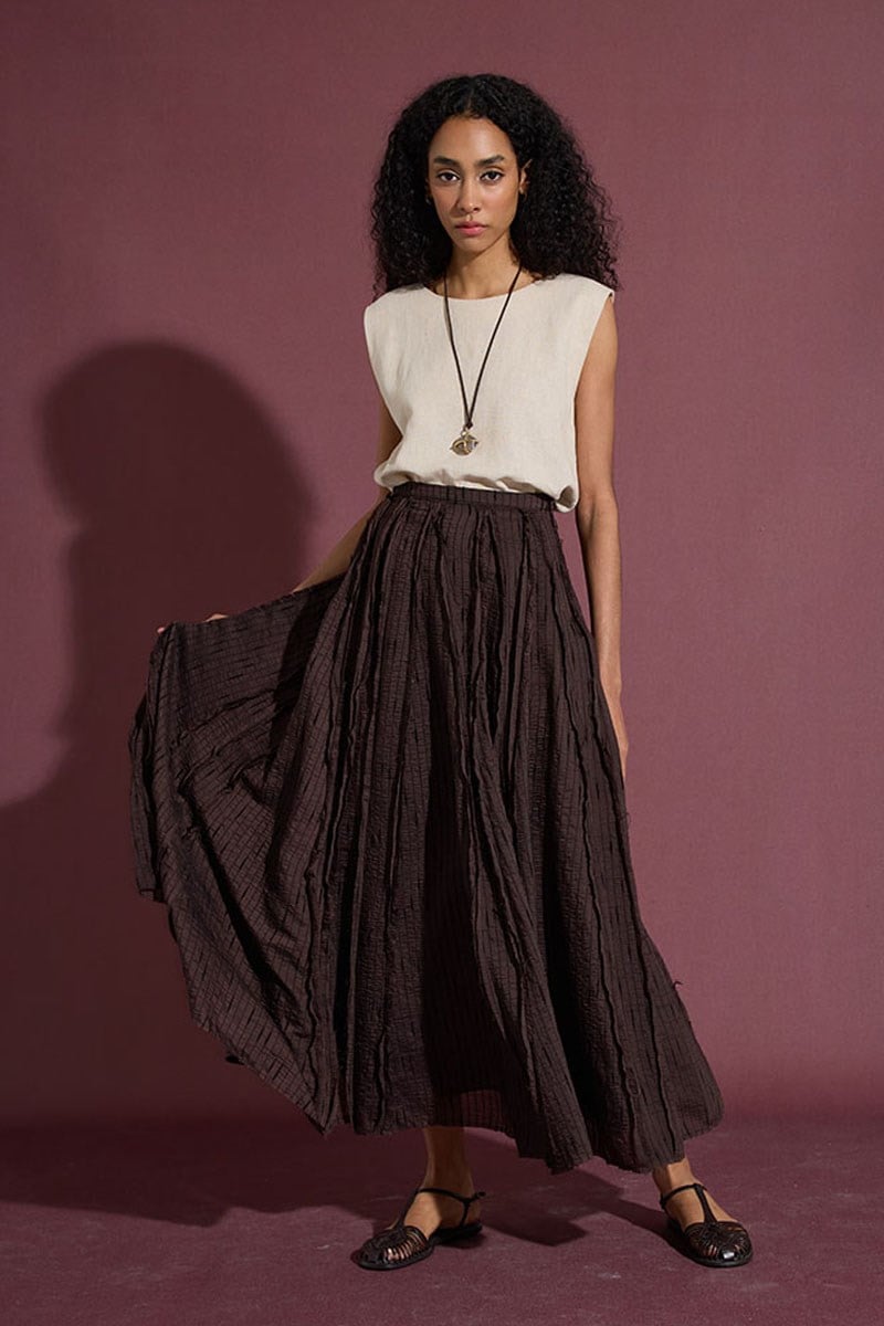 تنورة تول بخياطة ظاهرة باللون القهوة المر