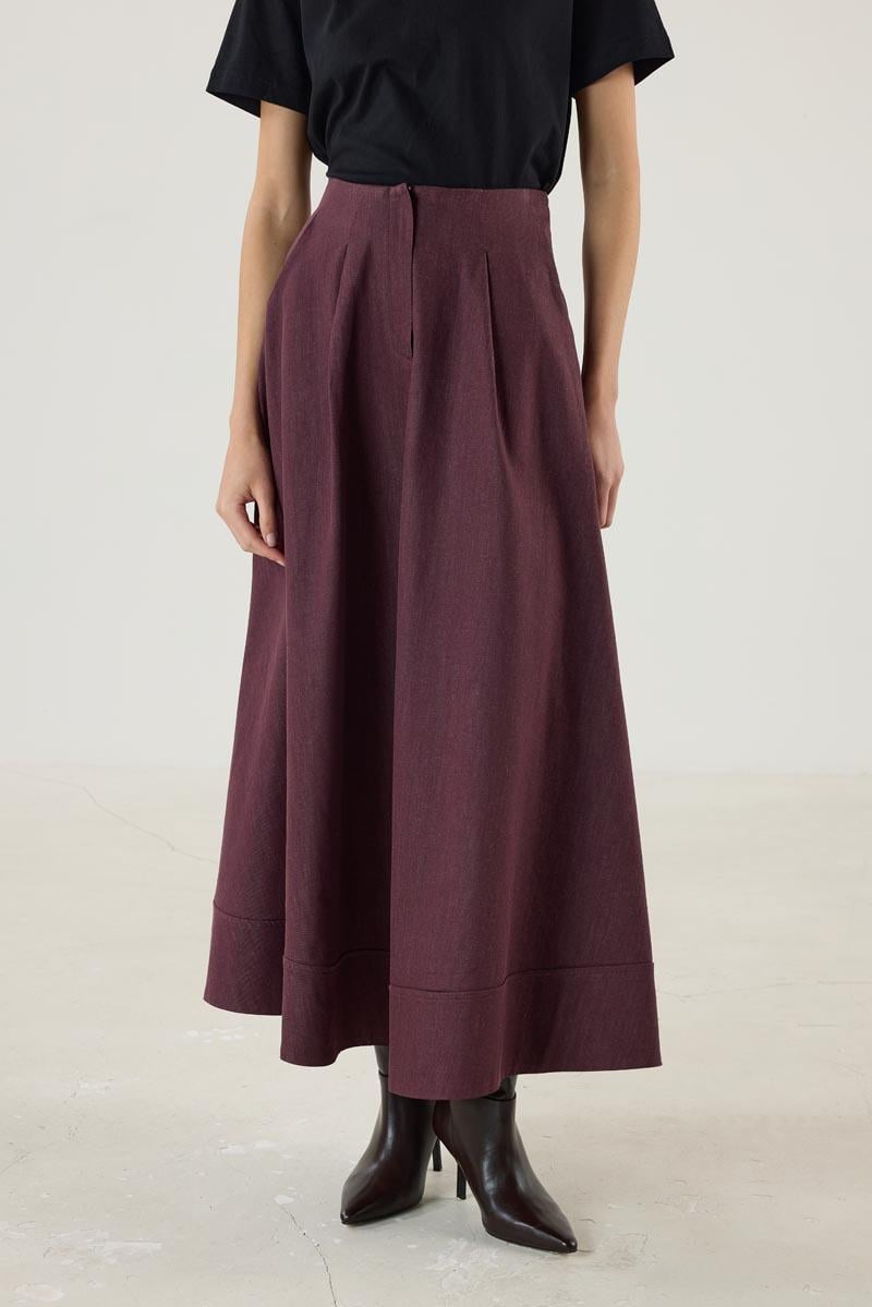 تنورة جينز بوردو بتصميم كليوش وقطع متعدد عند الحاشية