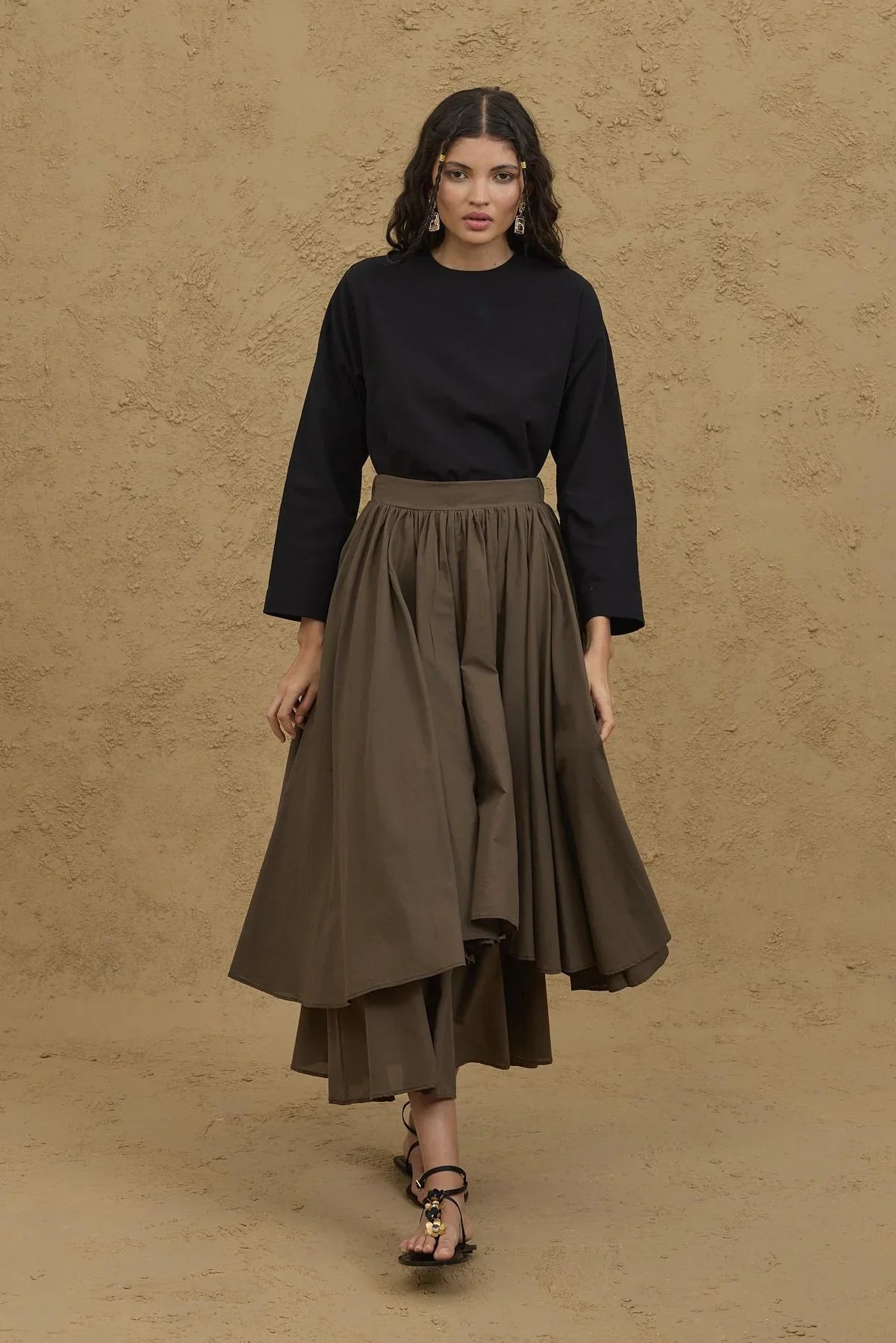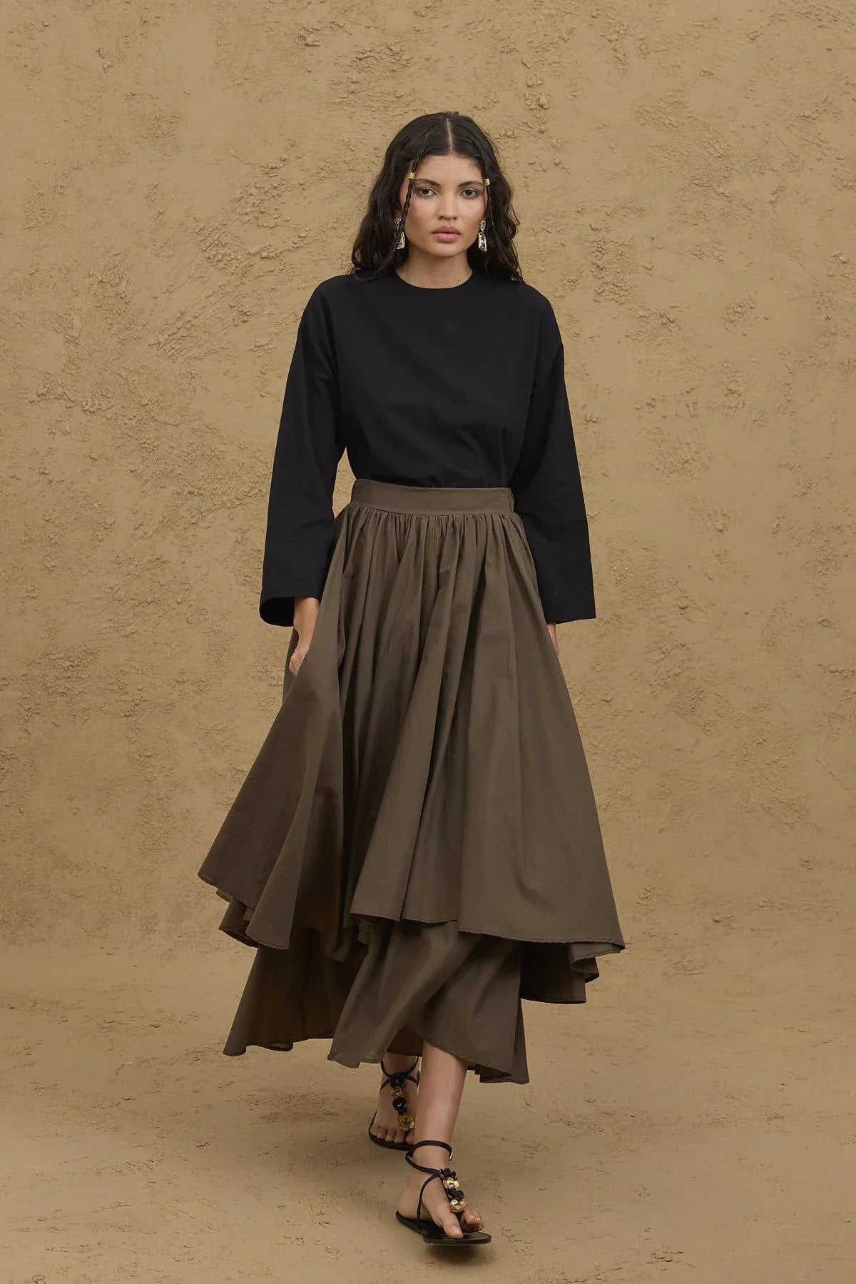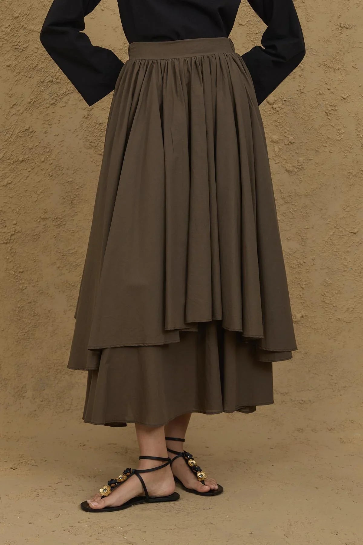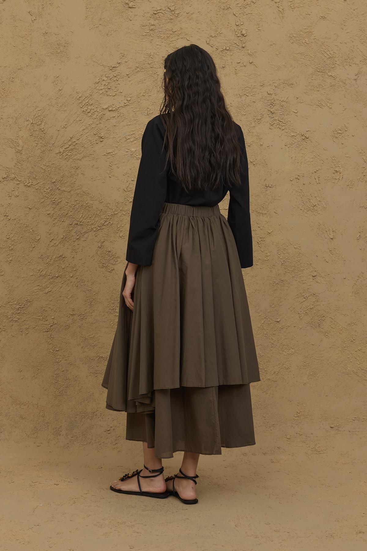 تنورة خاكي متعددة الطبقات