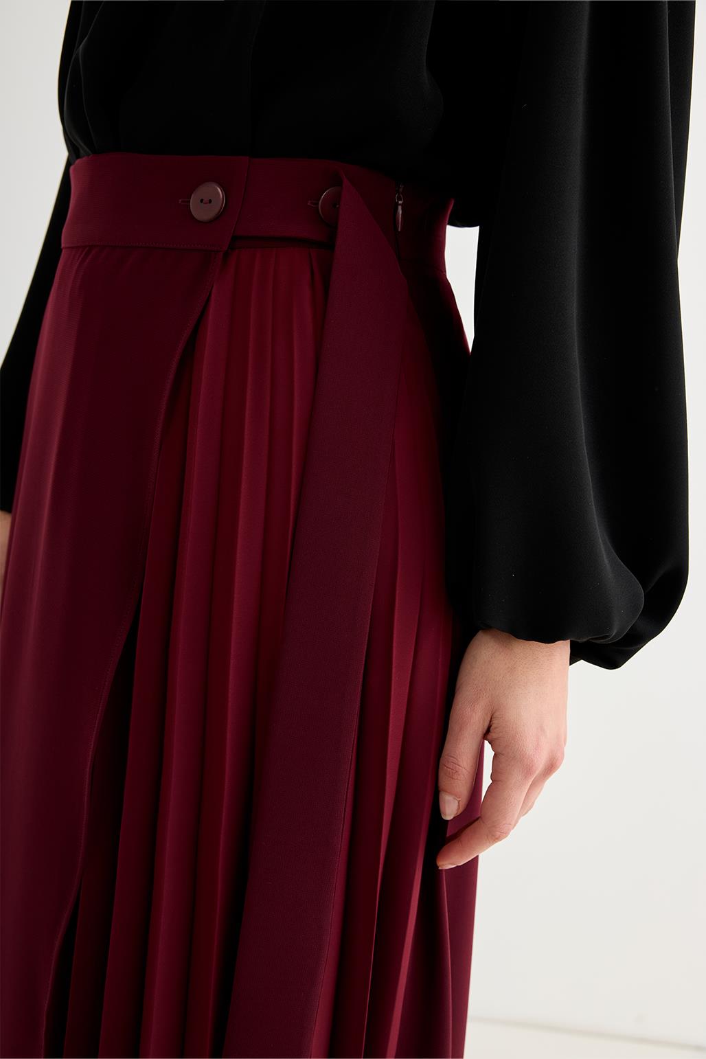تنورة ريتا المطوية ذات التفاف باللون البورجوندي