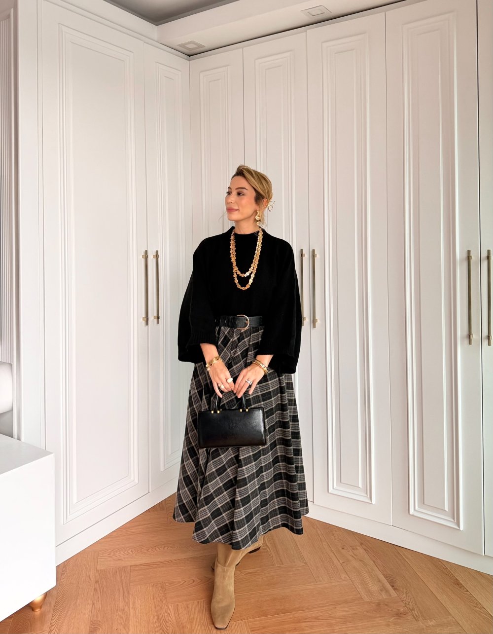 تنورة على شكل حرف A مطرزة باللون الأسود