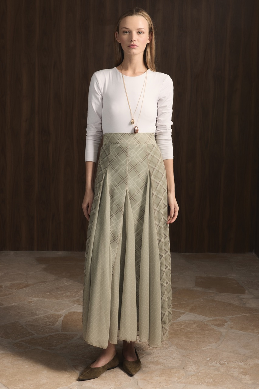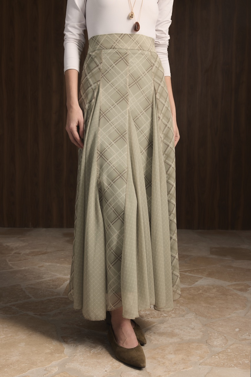 تنورة شيفون مطبوعة بالطراز الإسكتلندي – لون الكاكي