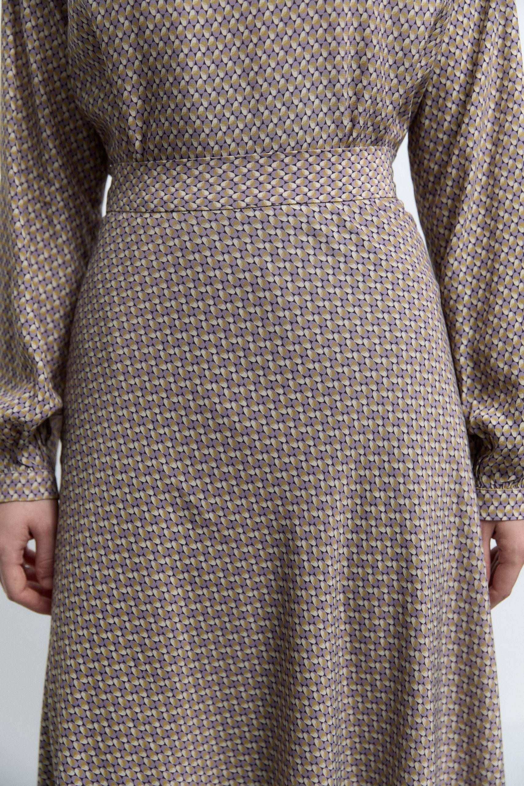 تم تصميم هذه التنورة بإيقاع عصري من النقش الهندسي الصغير، حيث تمنح أسلوبك شخصية قوية بفضل قوامها الديناميكي وتصميمها الواضح.