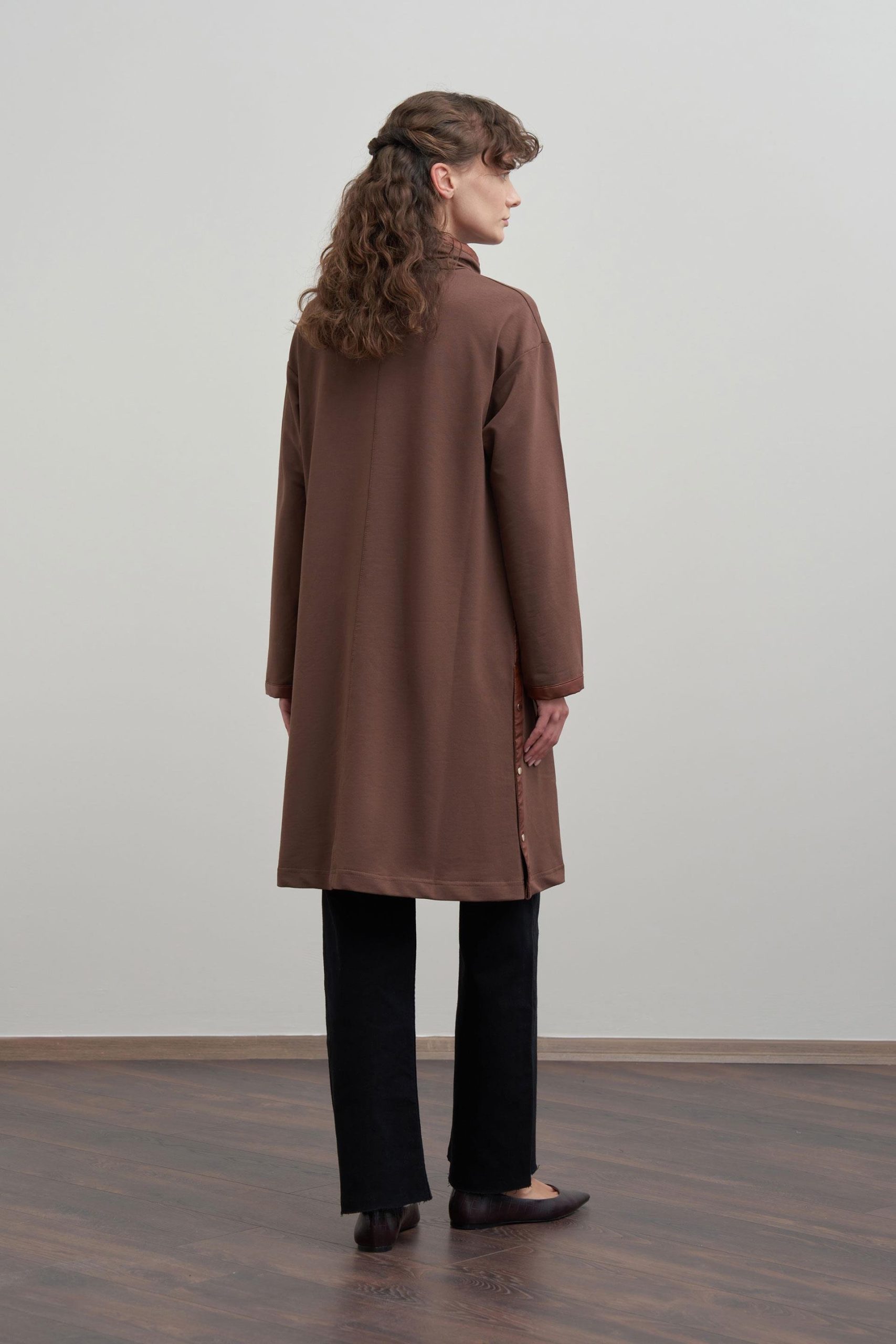 يتميز هذا التونيك بتصميم شق مخفي يمنح مظهرًا أنيقًا ومستمرًا مع خطوط بسيطة تخلق أناقة عصرية. شكله المتدفق يوفر راحة طوال اليوم بينما القص النظيف يسمح بالتنسيق السهل مع مختلف الملابس.