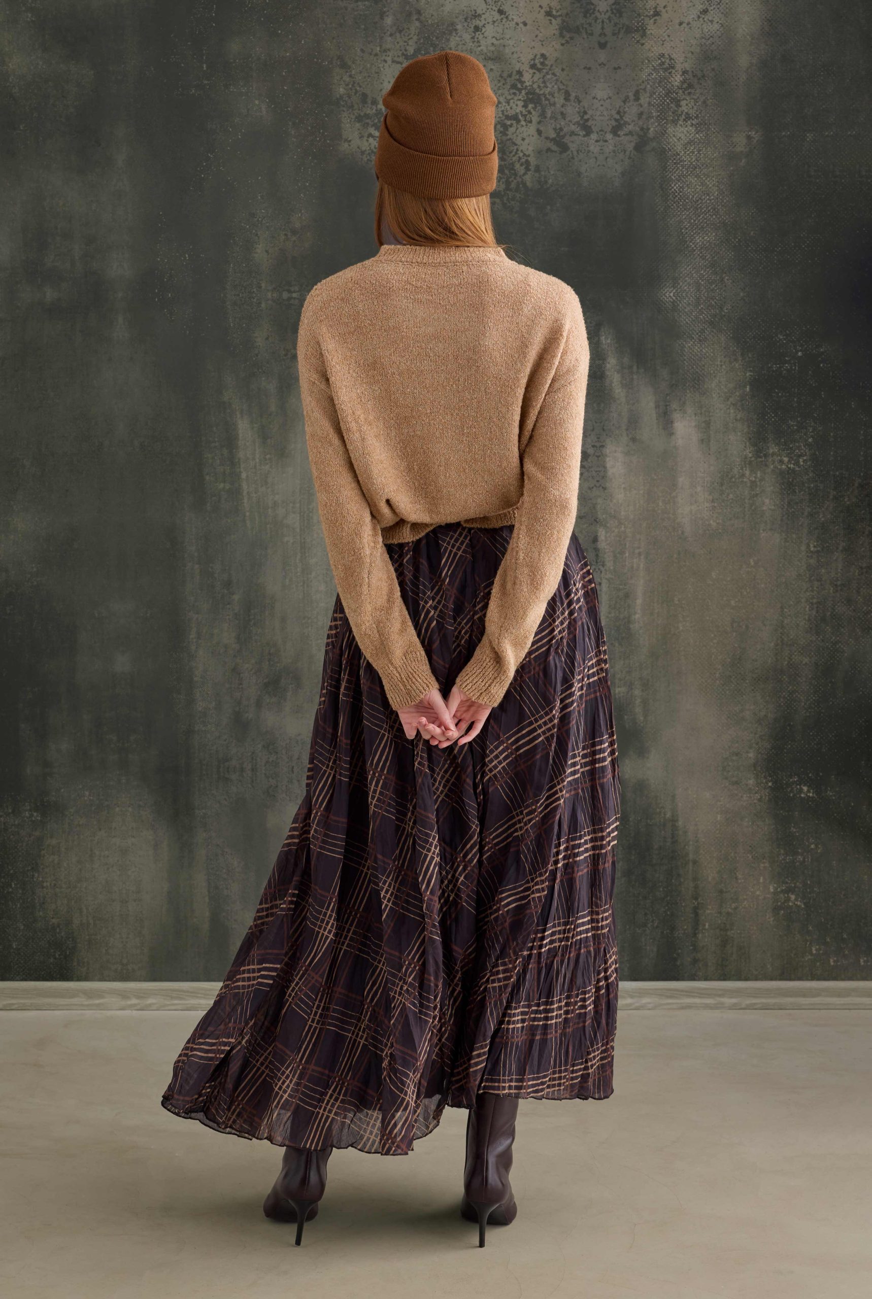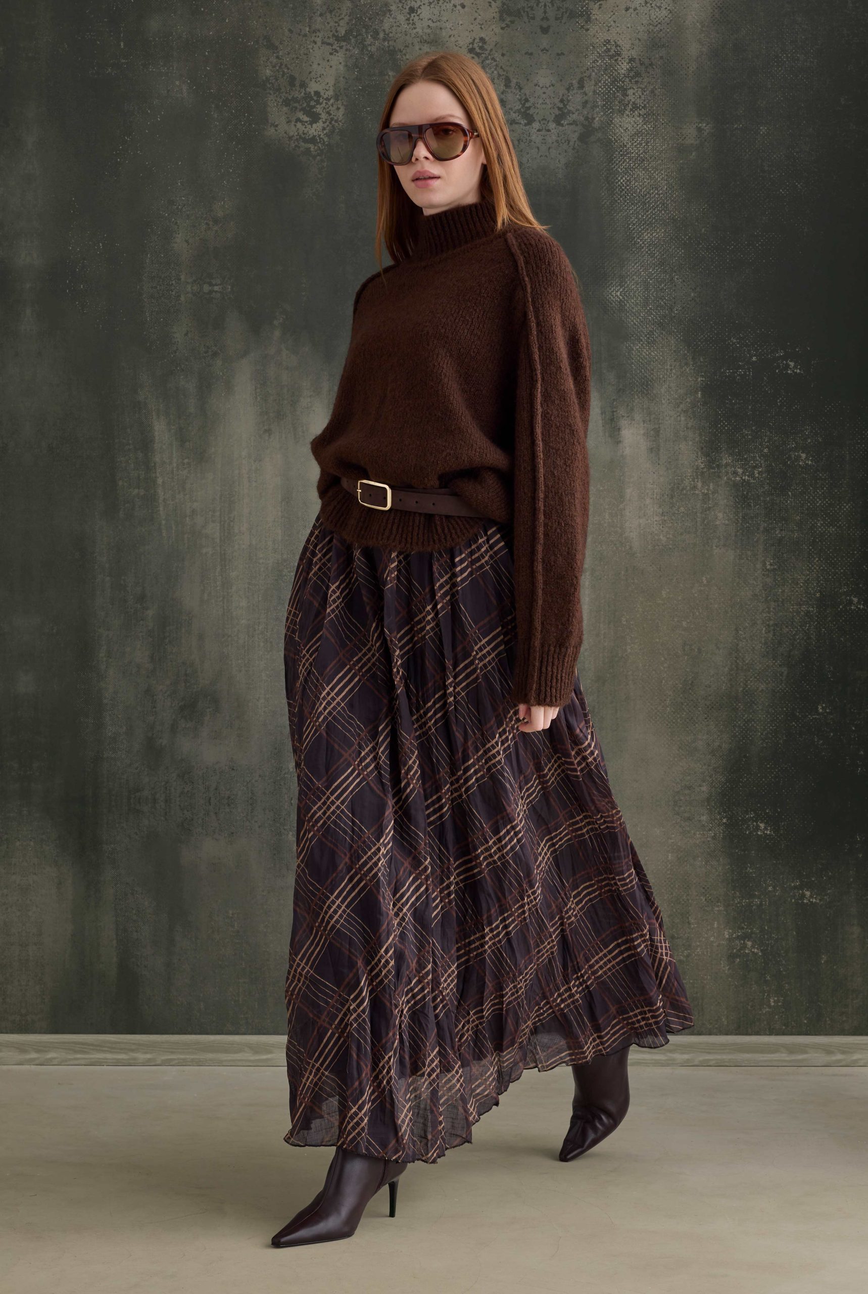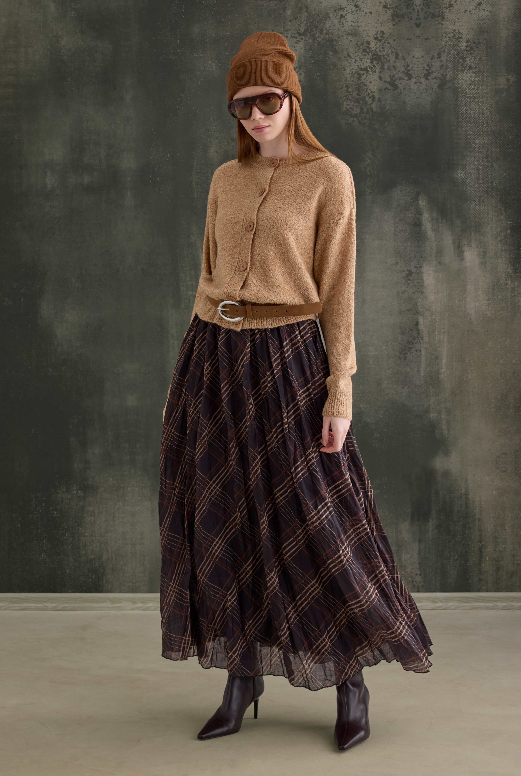 مثالية للارتداء اليومي، يمكن دمجها بسهولة مع القطع الأساسية، وتبرز كخيار تنورة متعدد الاستخدامات يسلط الضوء على الأناقة البسيطة.