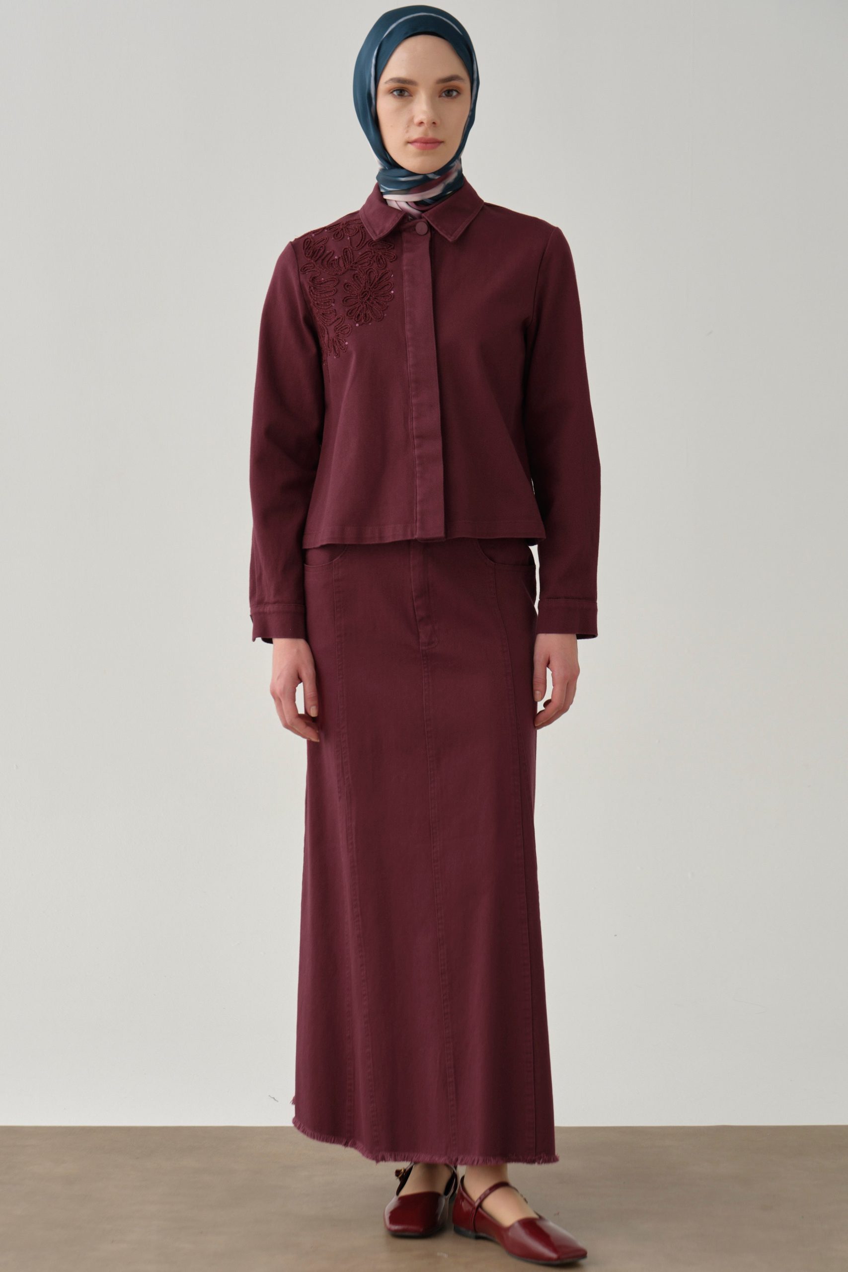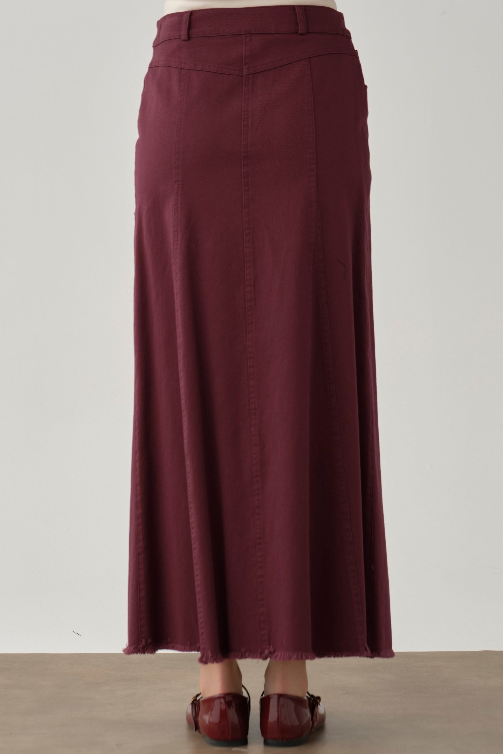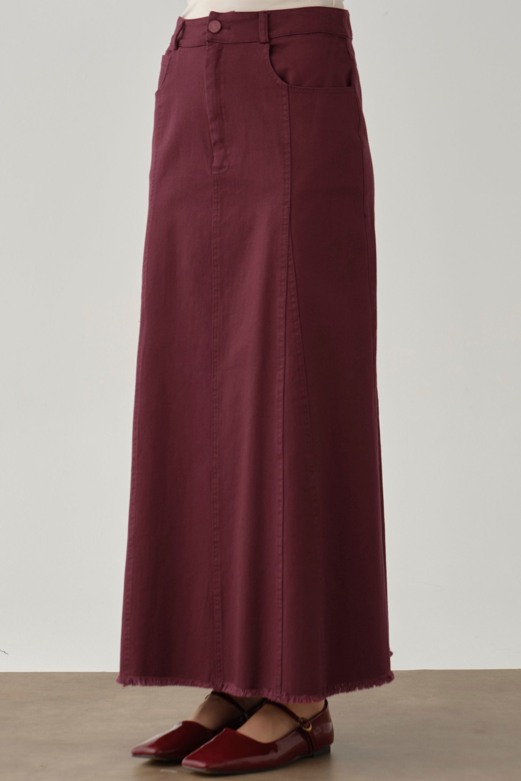 تنورة قماشية بجيوب وشراشيب – لون برقوقي
