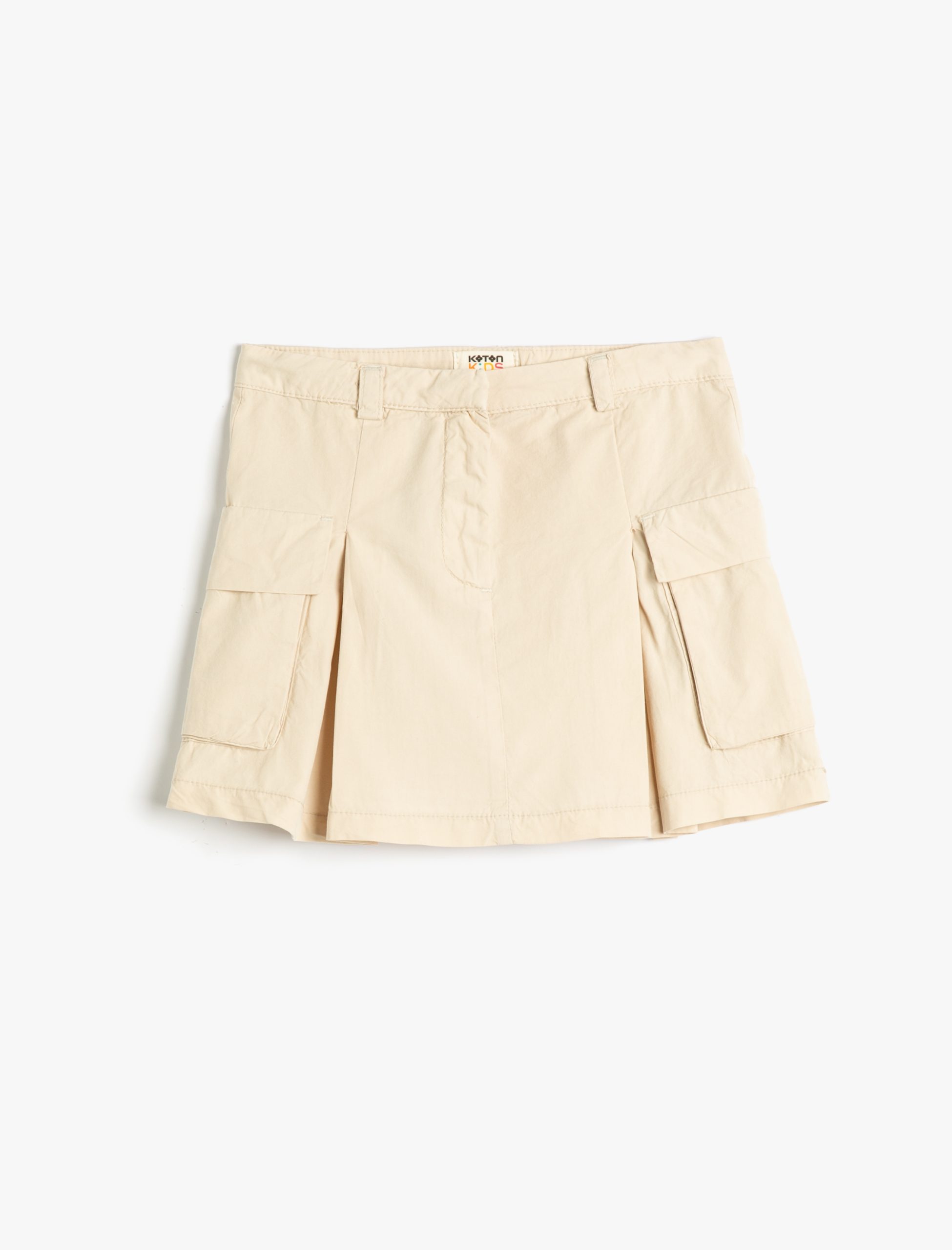 تنورة كارغو صغيرة للفتيات ذات طيات وجيوب جانبية من القطن
