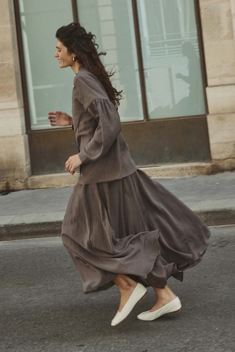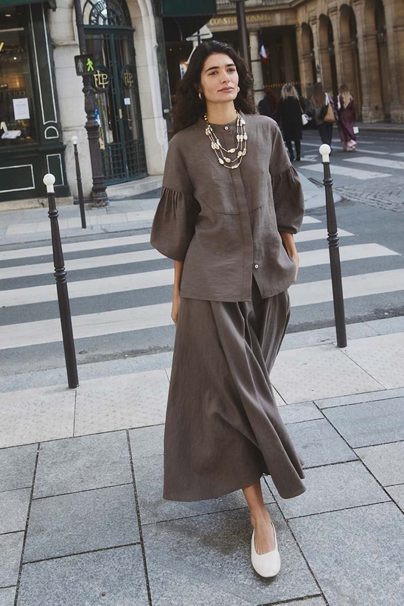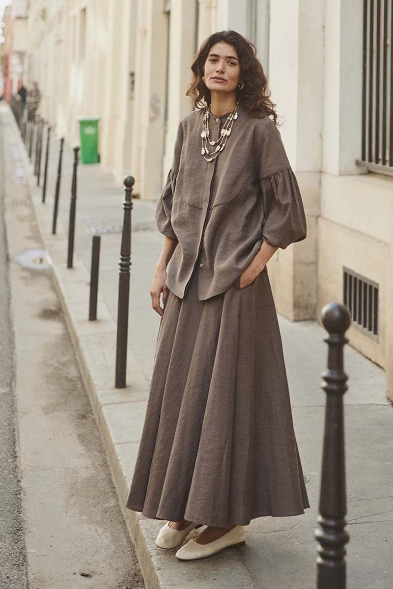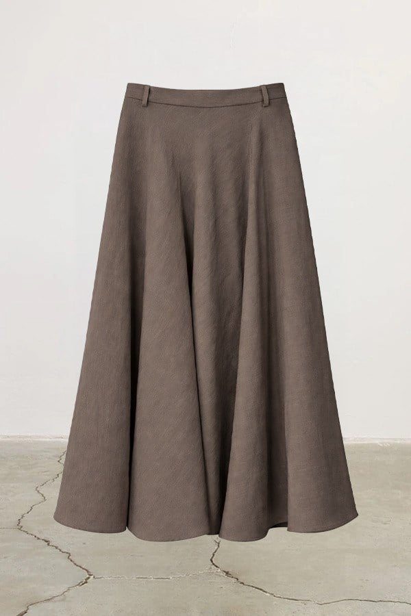 تنورة كتان تنسيل مفتوحة بلون المنك الداكن