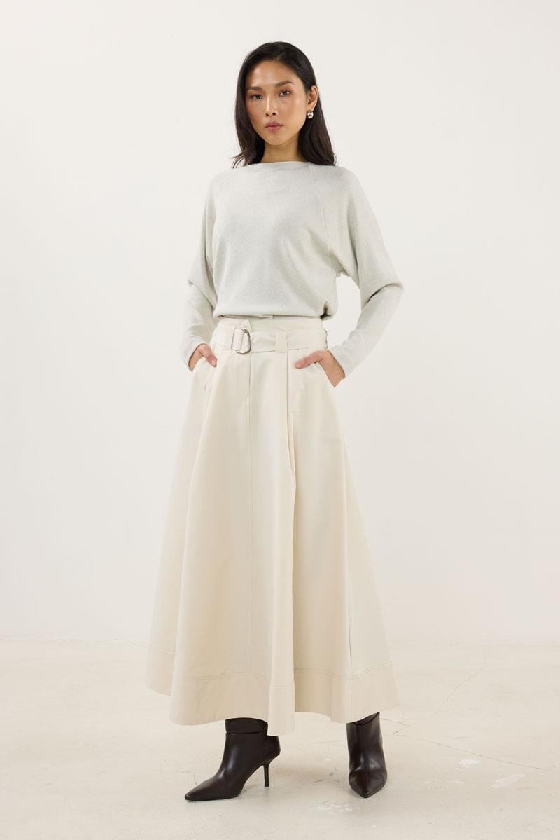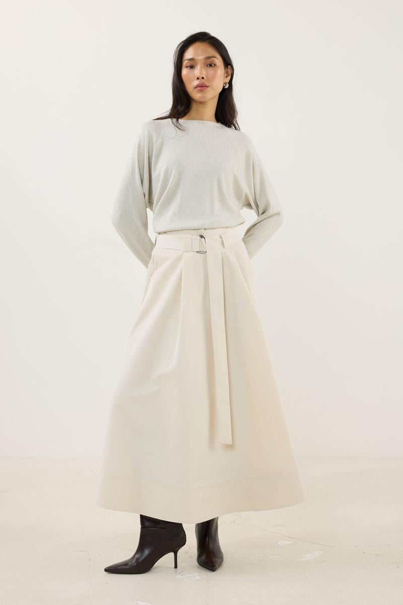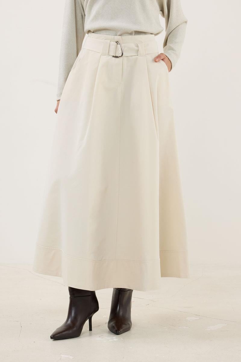 تنورة كريمية بحزام وطرف مشقوق