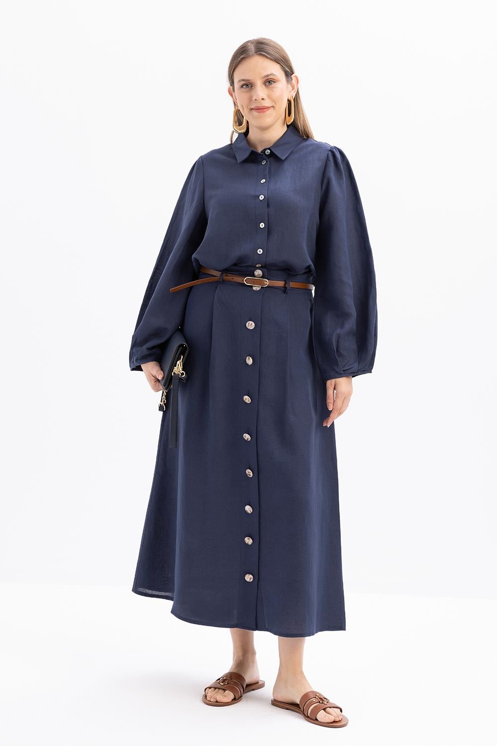 تنورة كشكشة باللون النيلي مزودة بحزام
