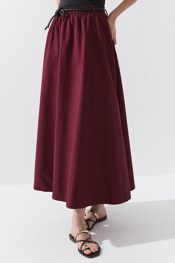 مواصفات تنورة البوبلين القطنية البورجوندية ذات الخصر المطاطي