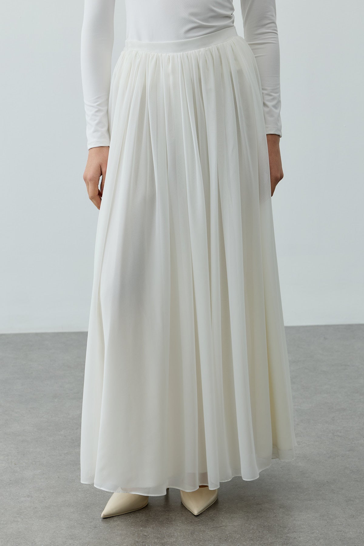 تنورة ماكسي مطوية ومتدلية بلون البيج الفاتح
