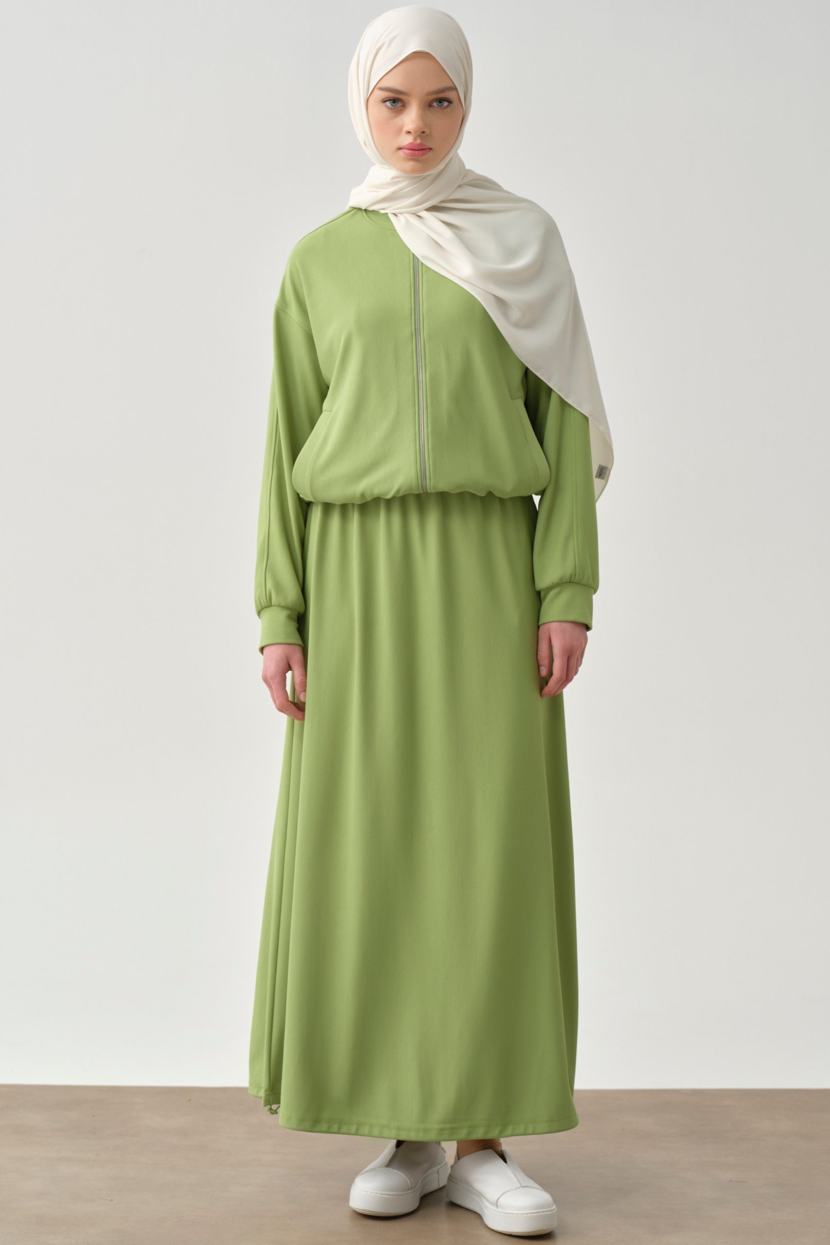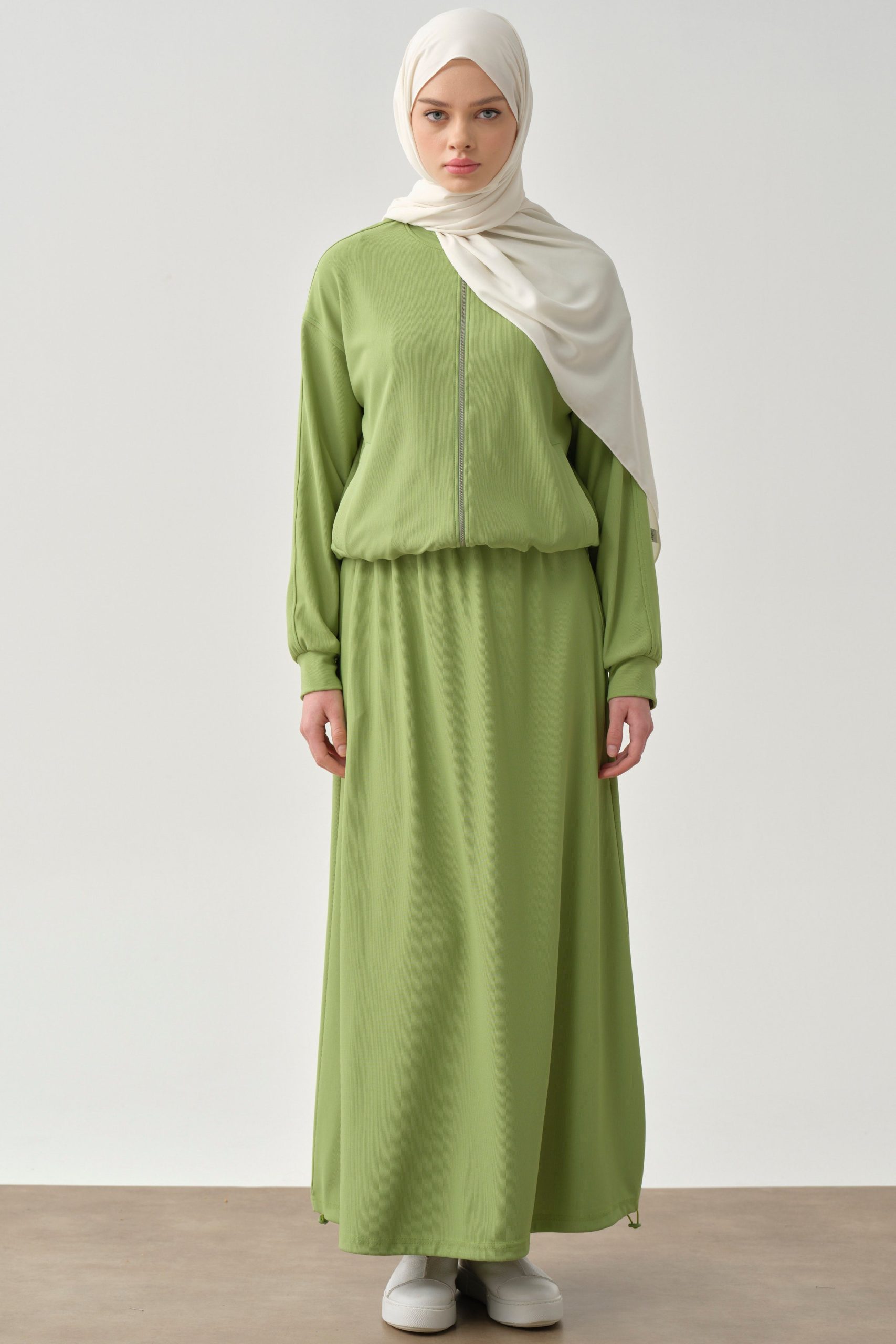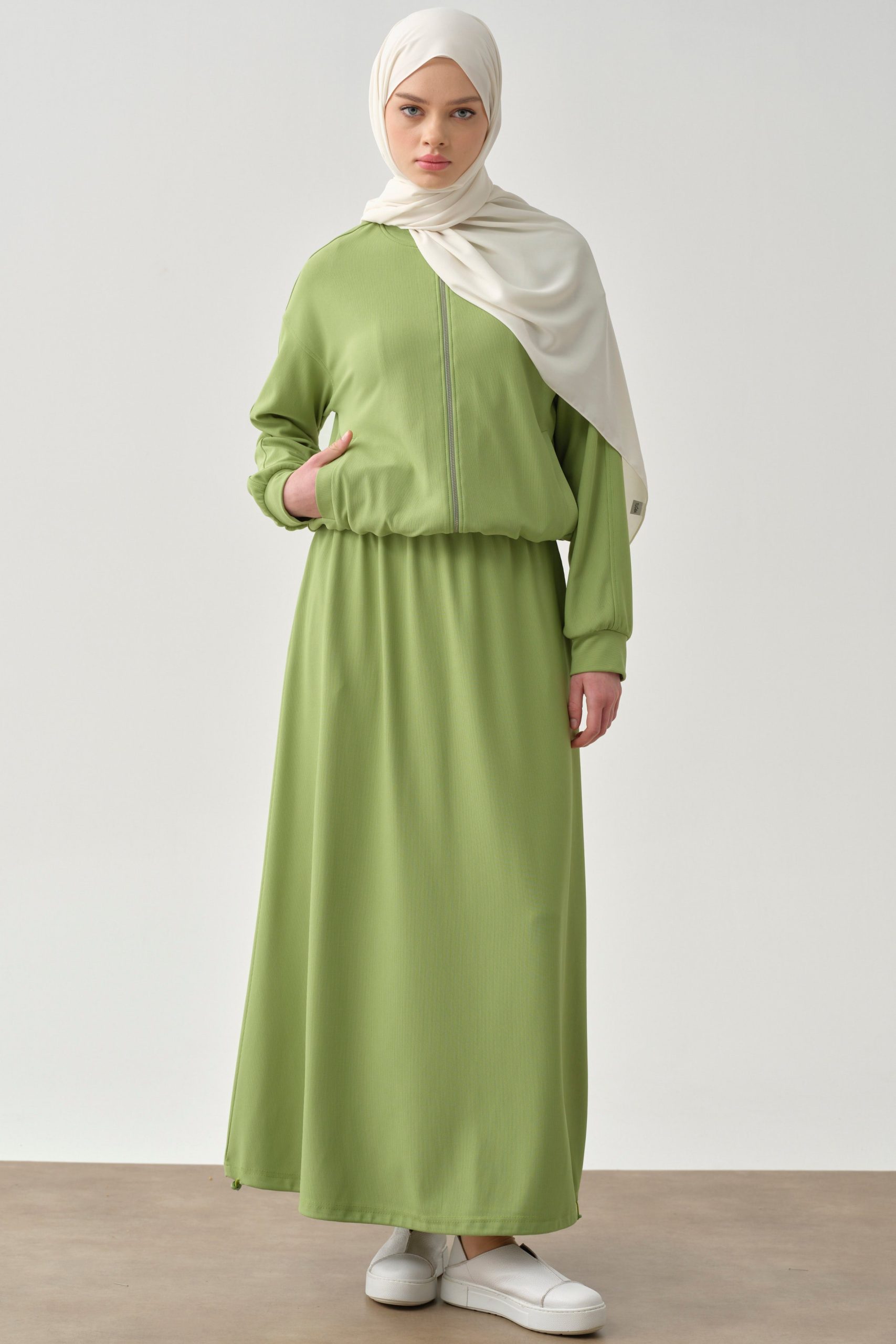 تنورة محبوكة بخصر مطاطي وجيوب خفية – أخضر فستقي