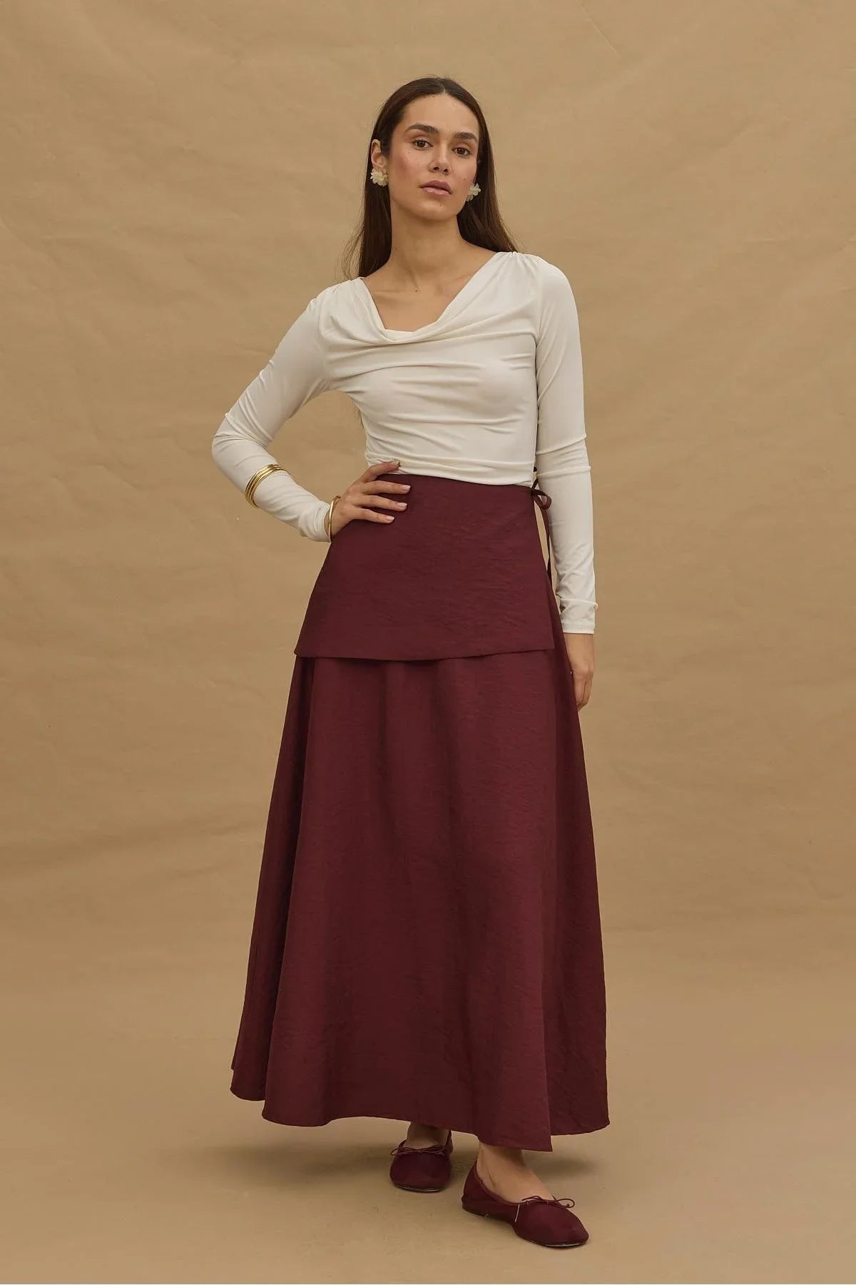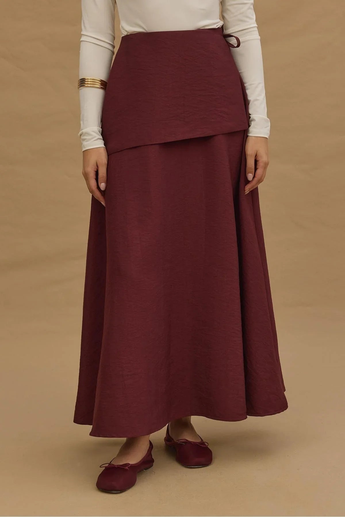 تنورة محمولة بحزام بلون أحمر داكن