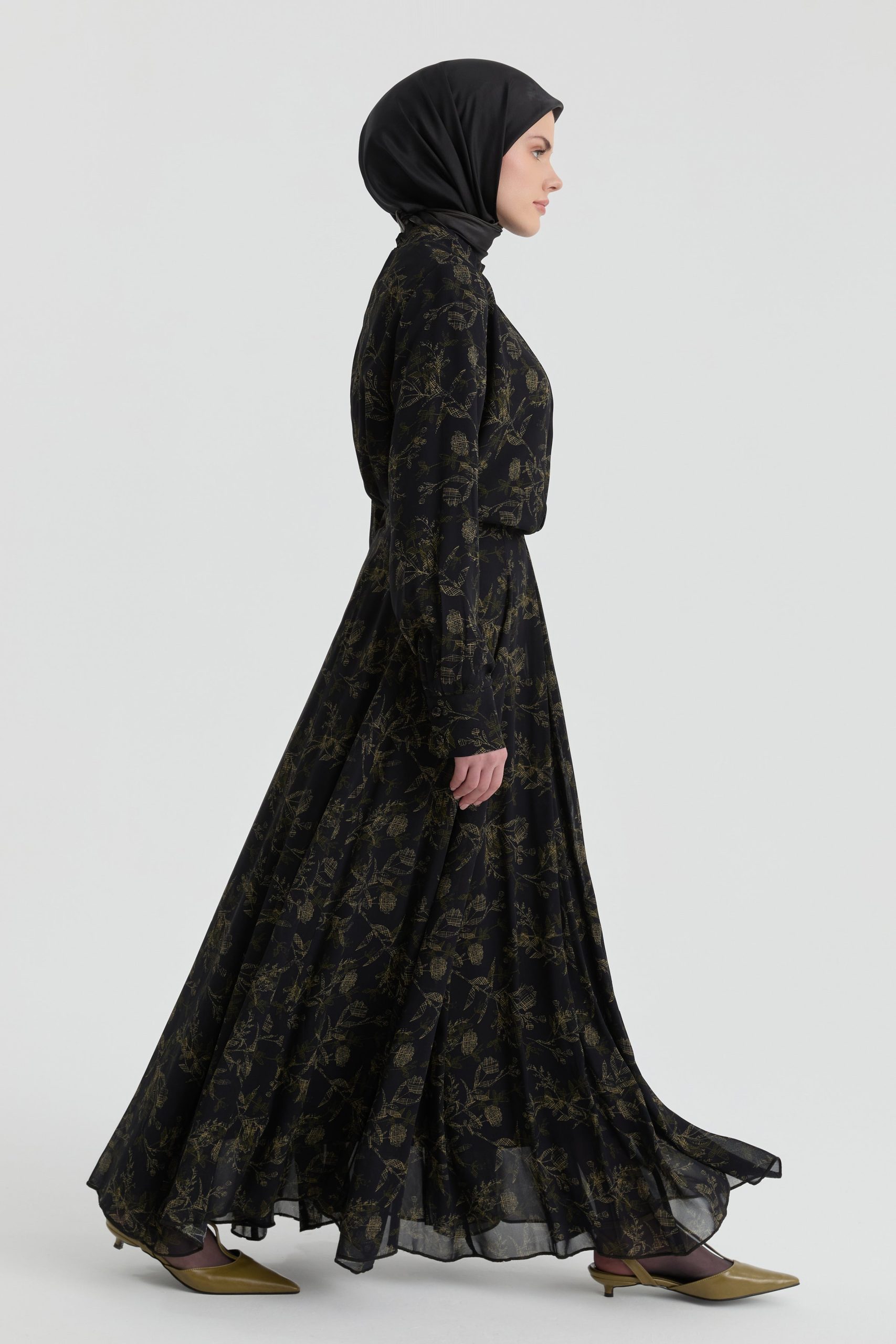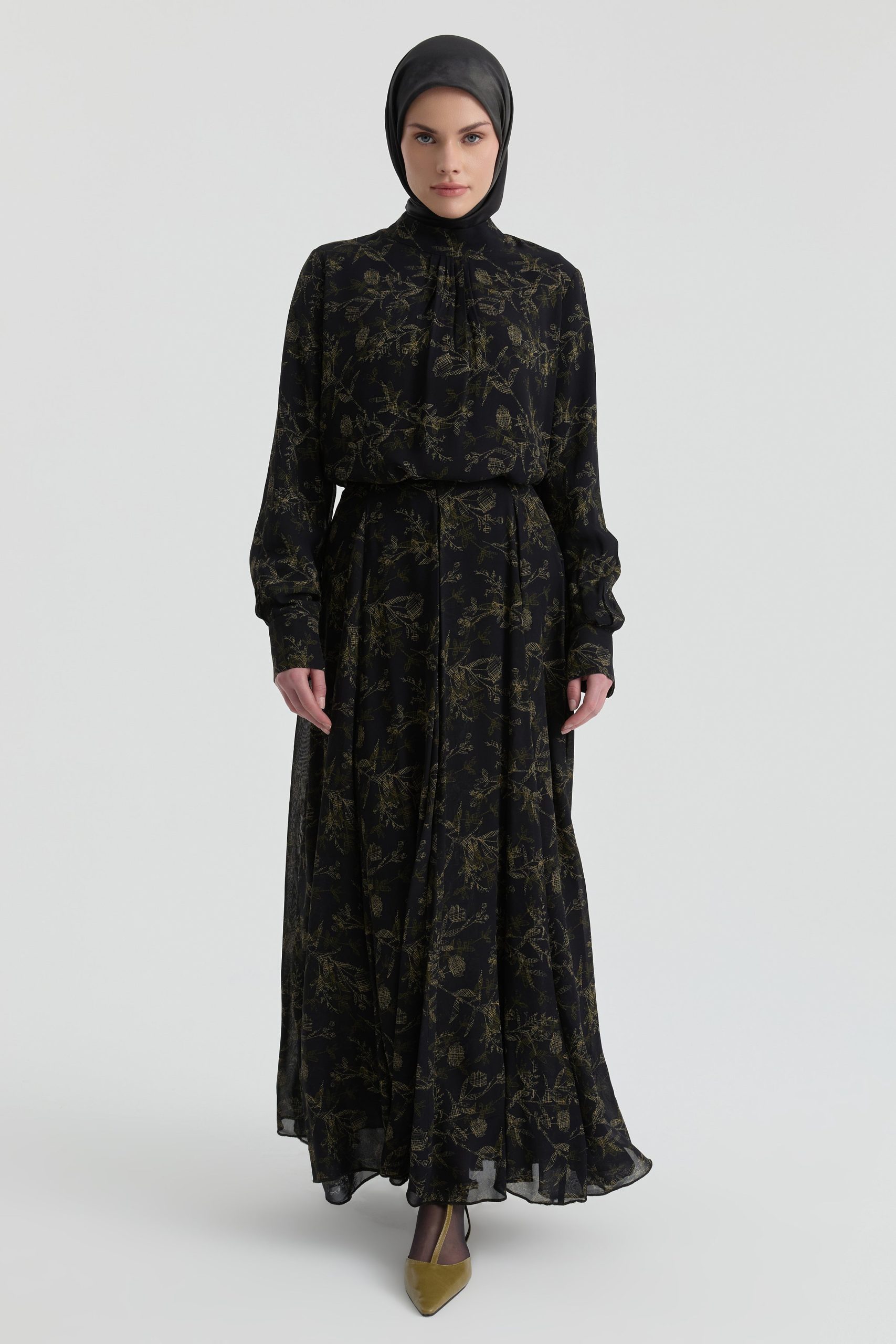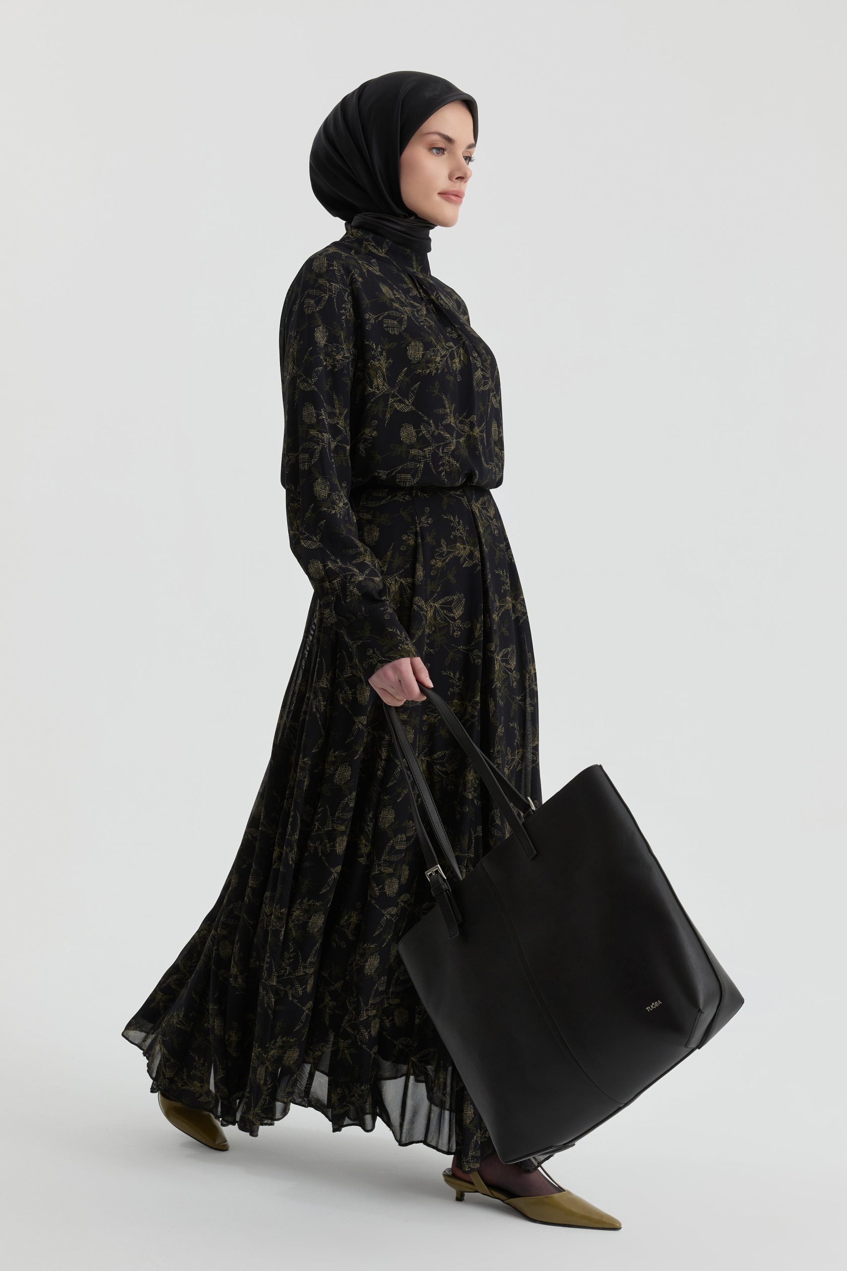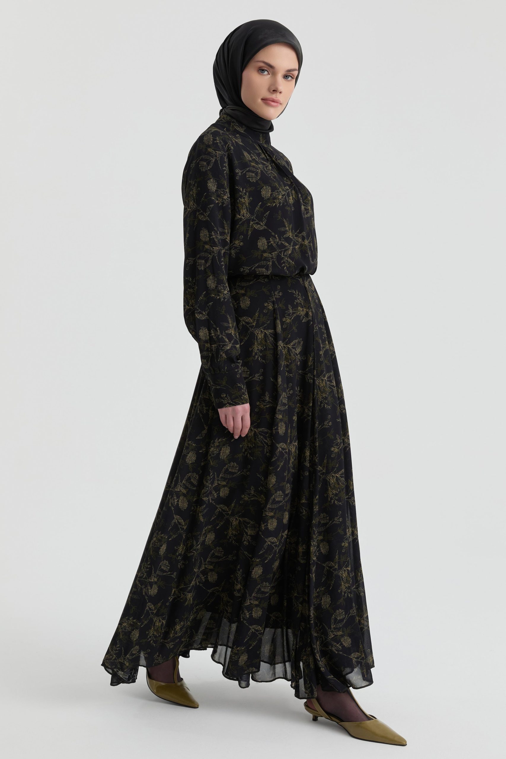 تنورة على شكل حرف A مطرزة باللون الأسود