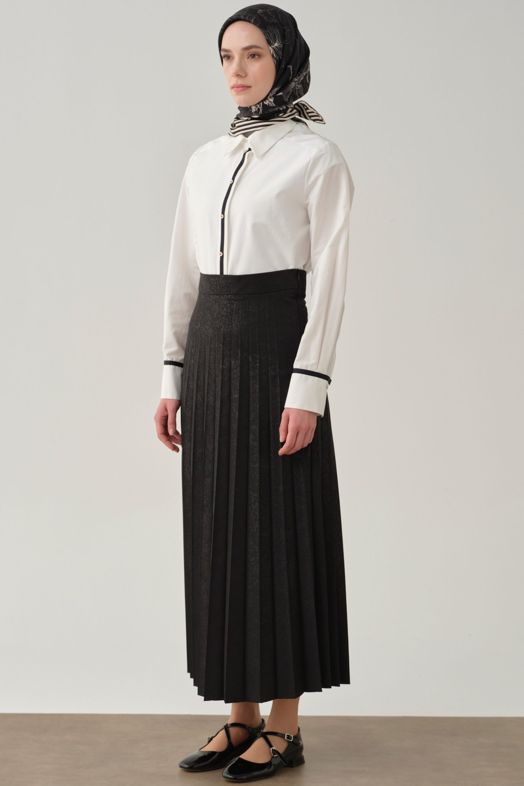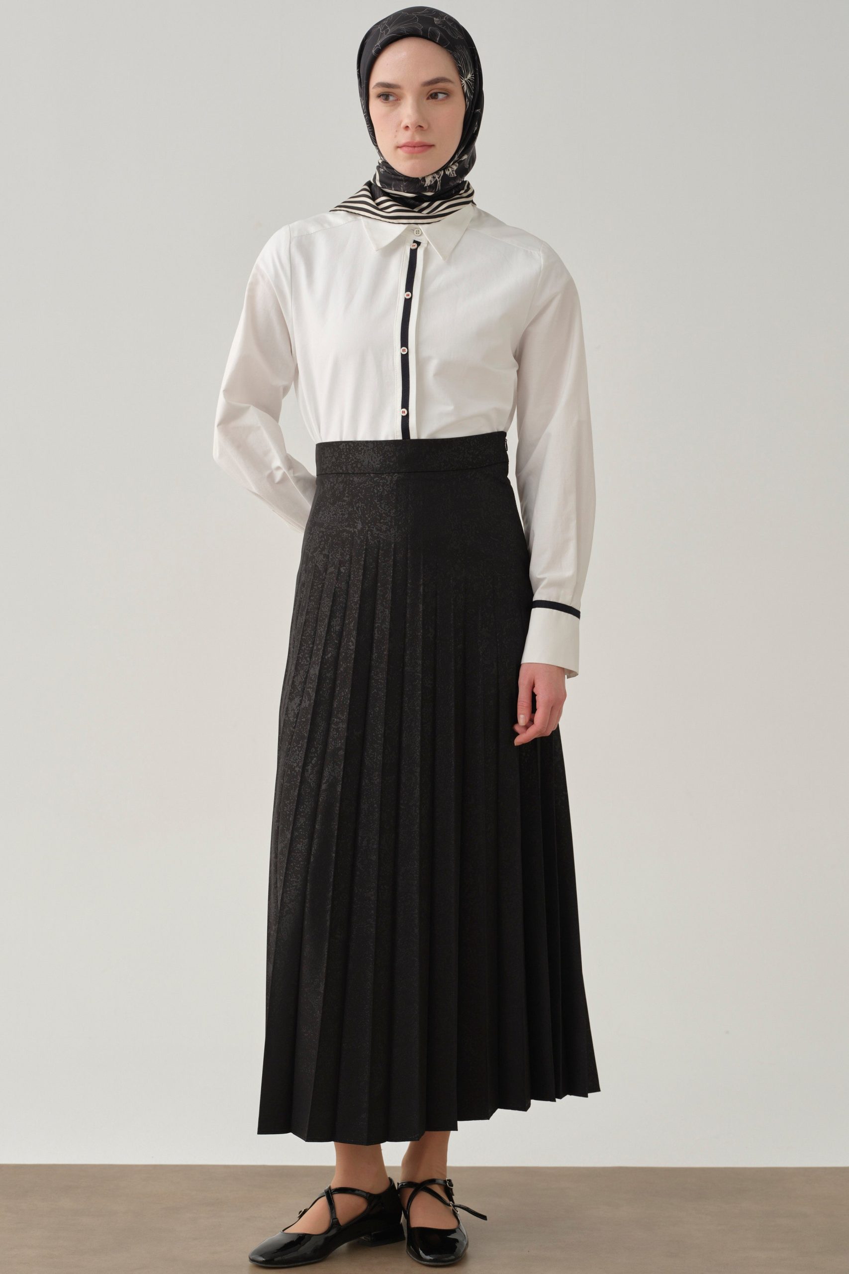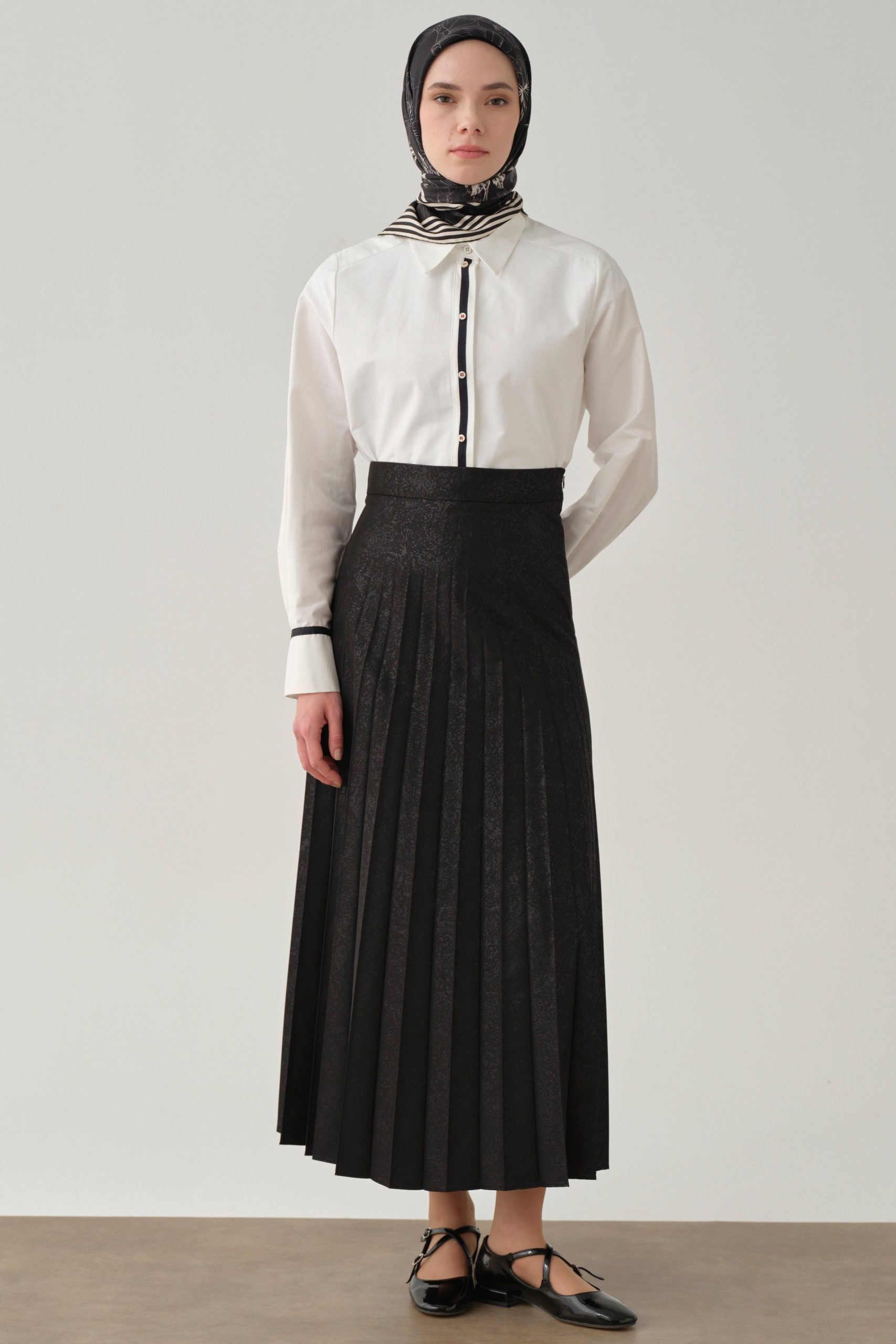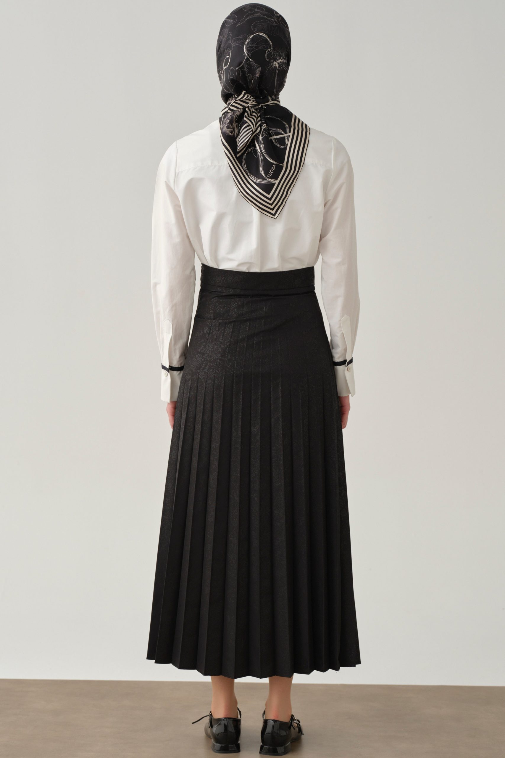 تتميز هذه التنورة المطوية بتصميمها الأنيق والراقي، حيث توفر حركة ناعمة مع كل خطوة. تضمن بنيتها المتدفقة وقصتها المريحة استخدامًا مريحًا، بينما تخلق مظهرًا عصريًا وأنيقًا.