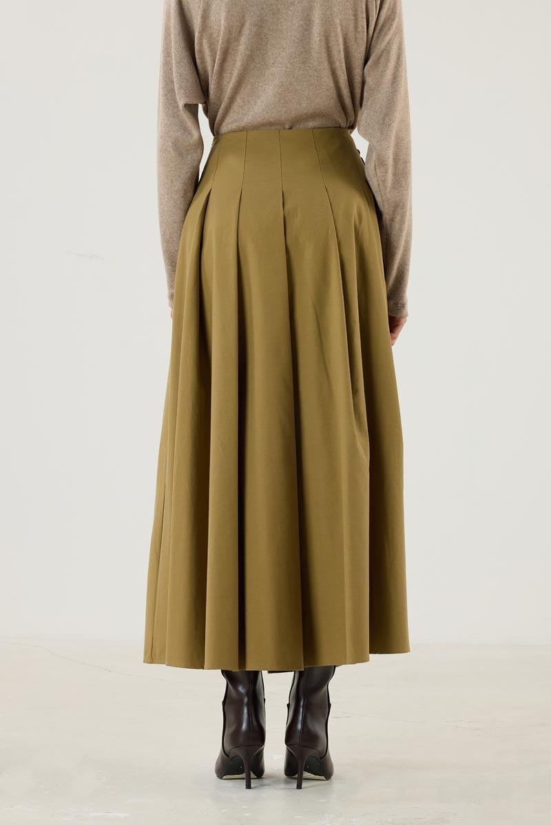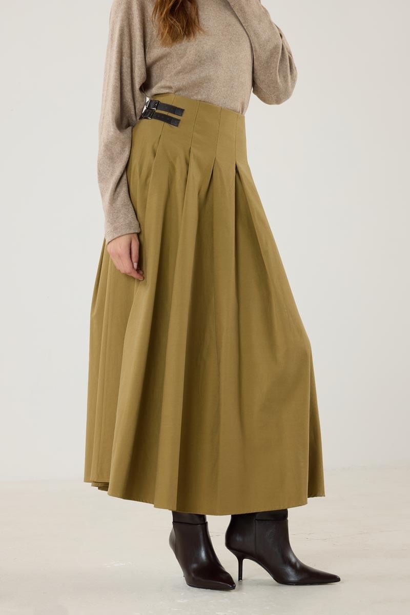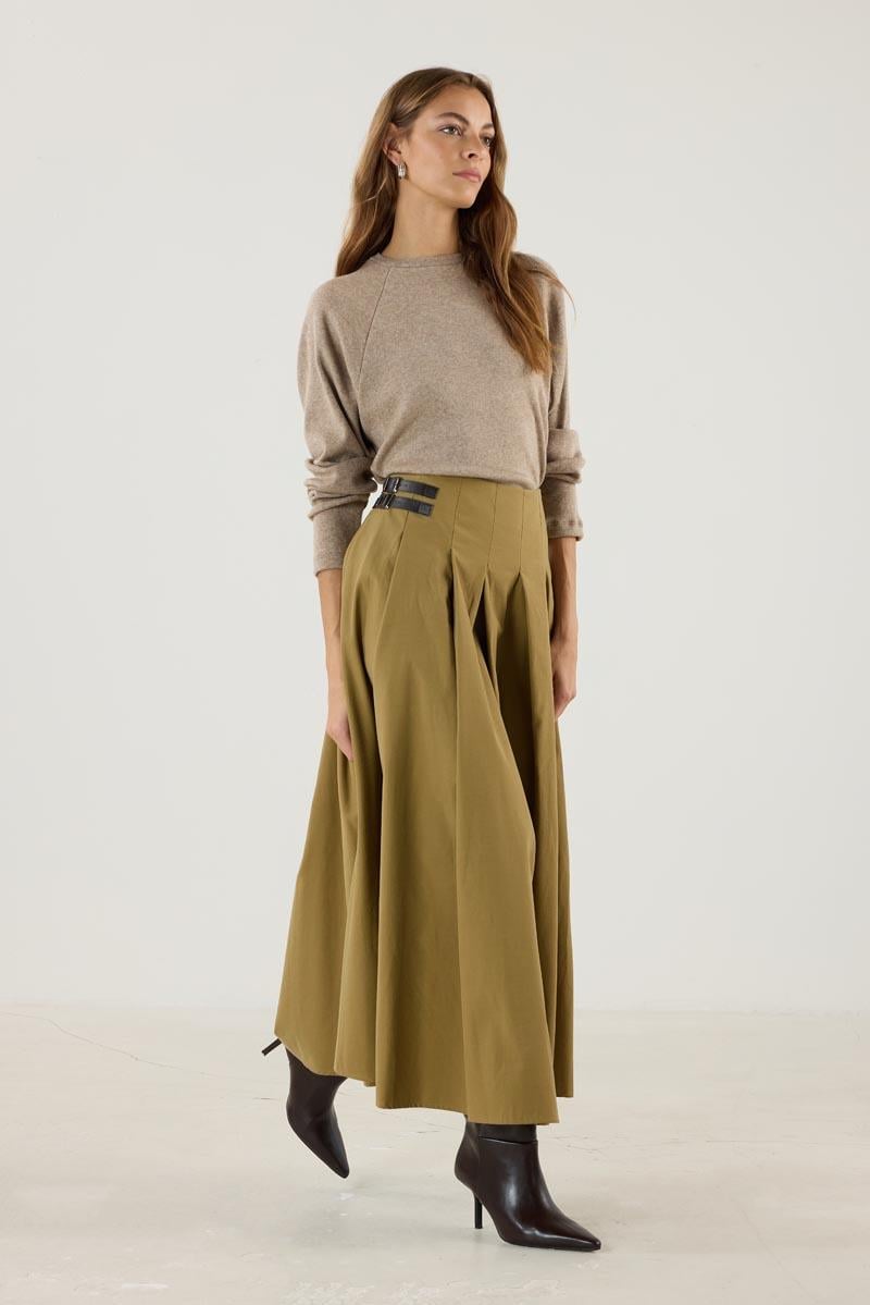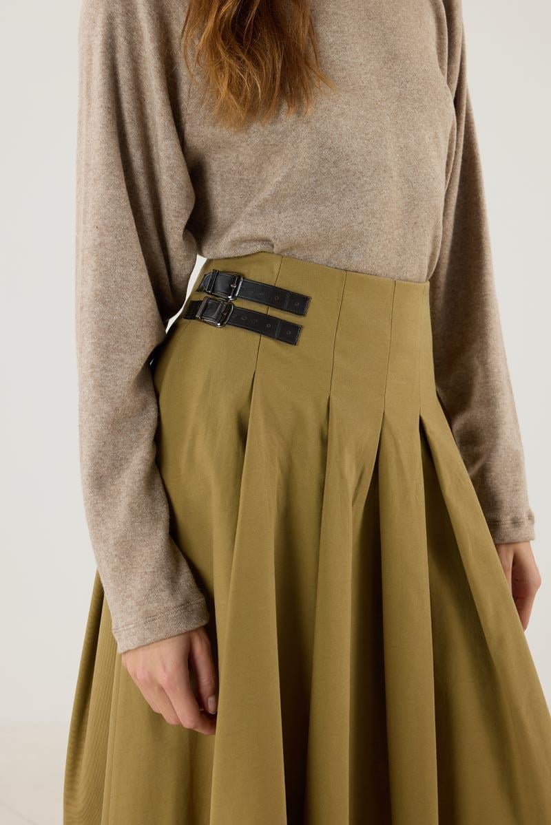 تنورة مطوية باللون الأخضر الزيتوني مع إكسسوار حزام