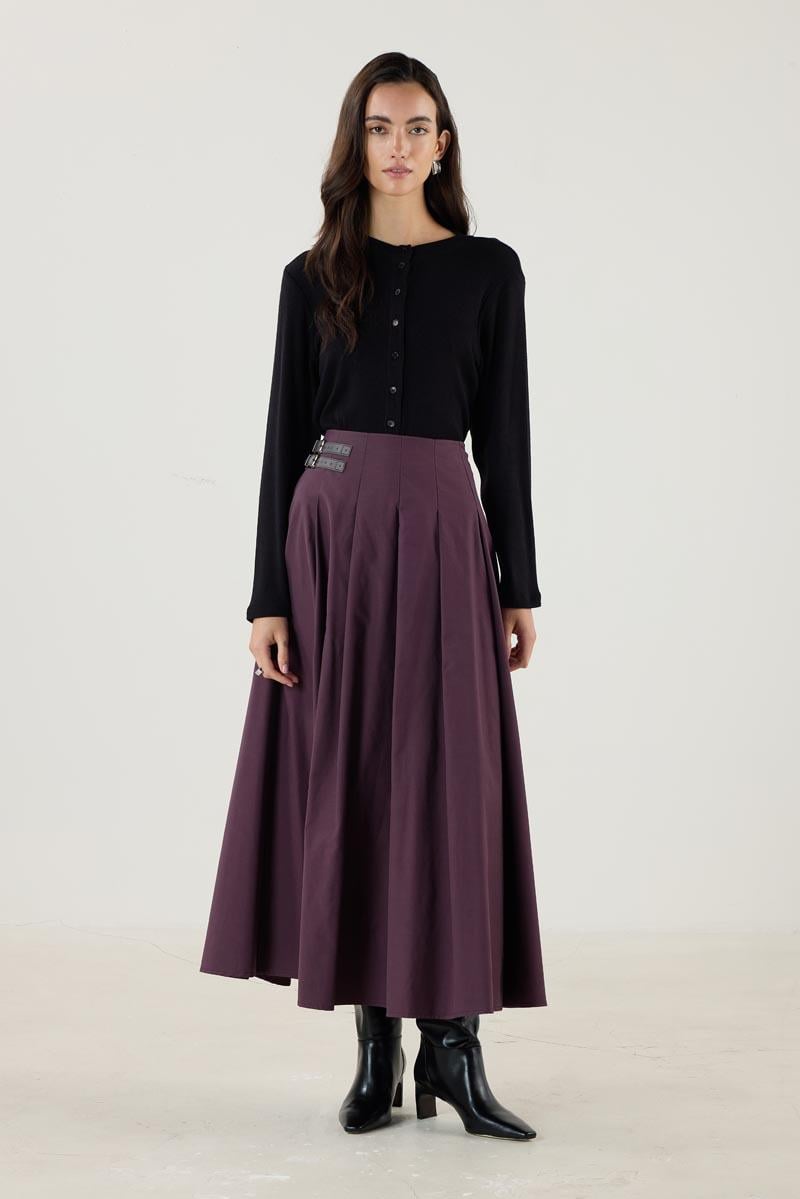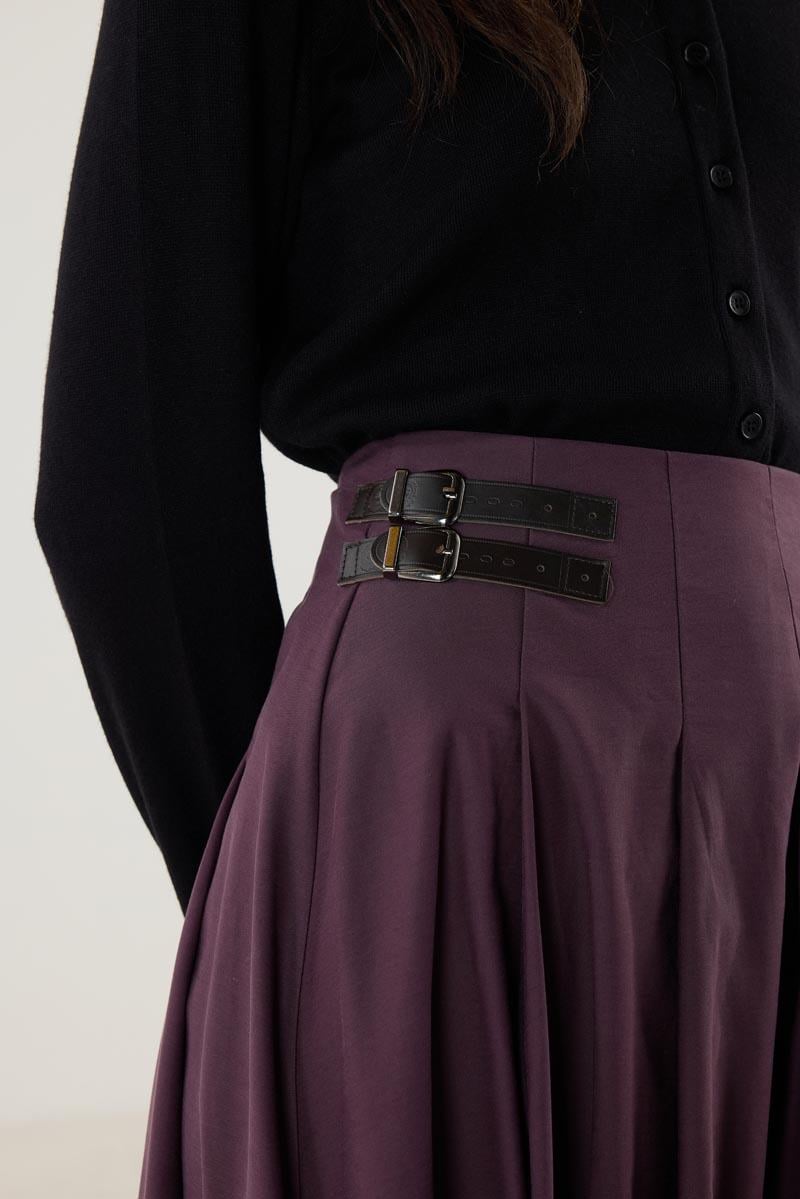 تنورة مطوية بلون الموف مع إكسسوار الحزام