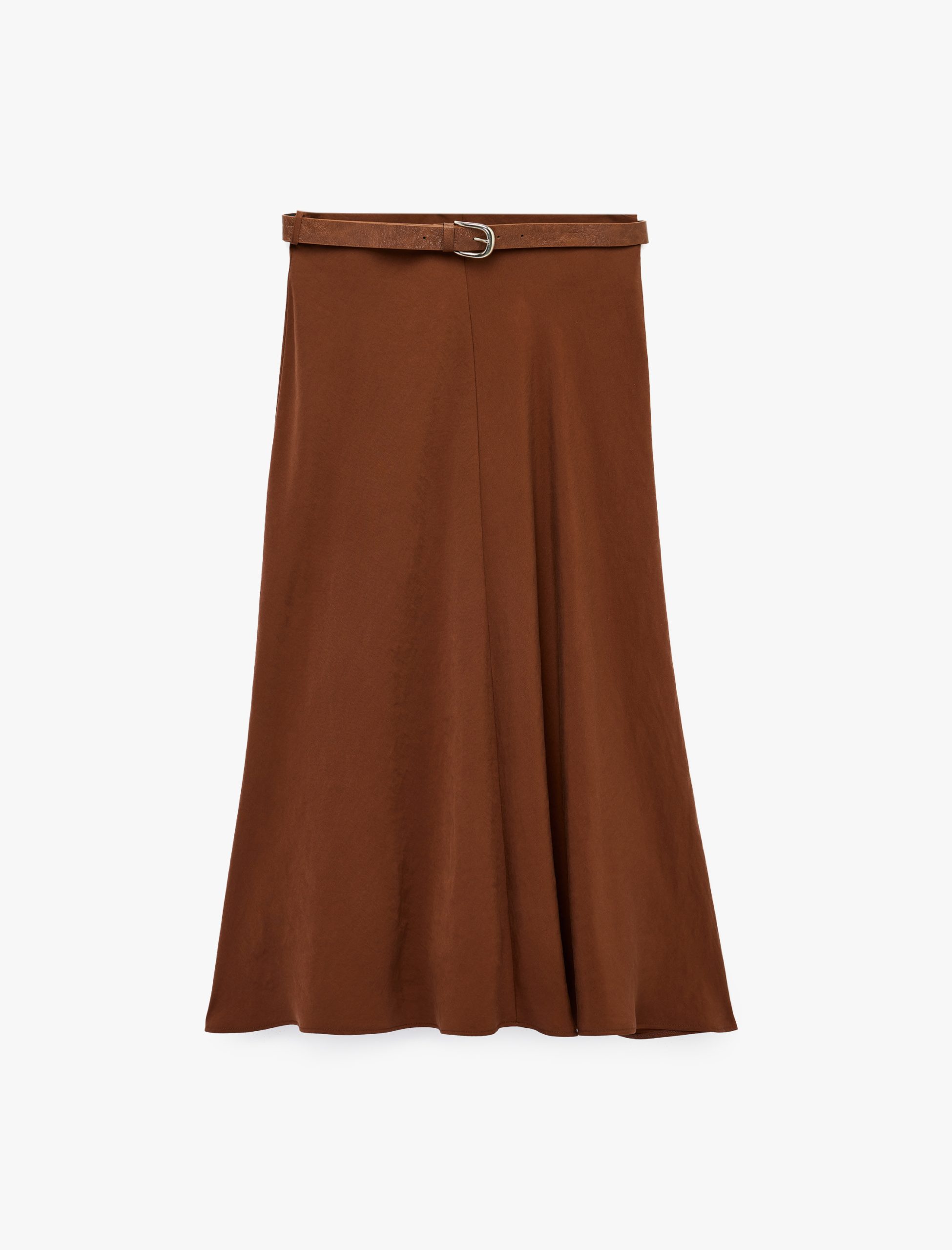 تنورة ميدي مرفرفة مع حزام للخصر القياسي