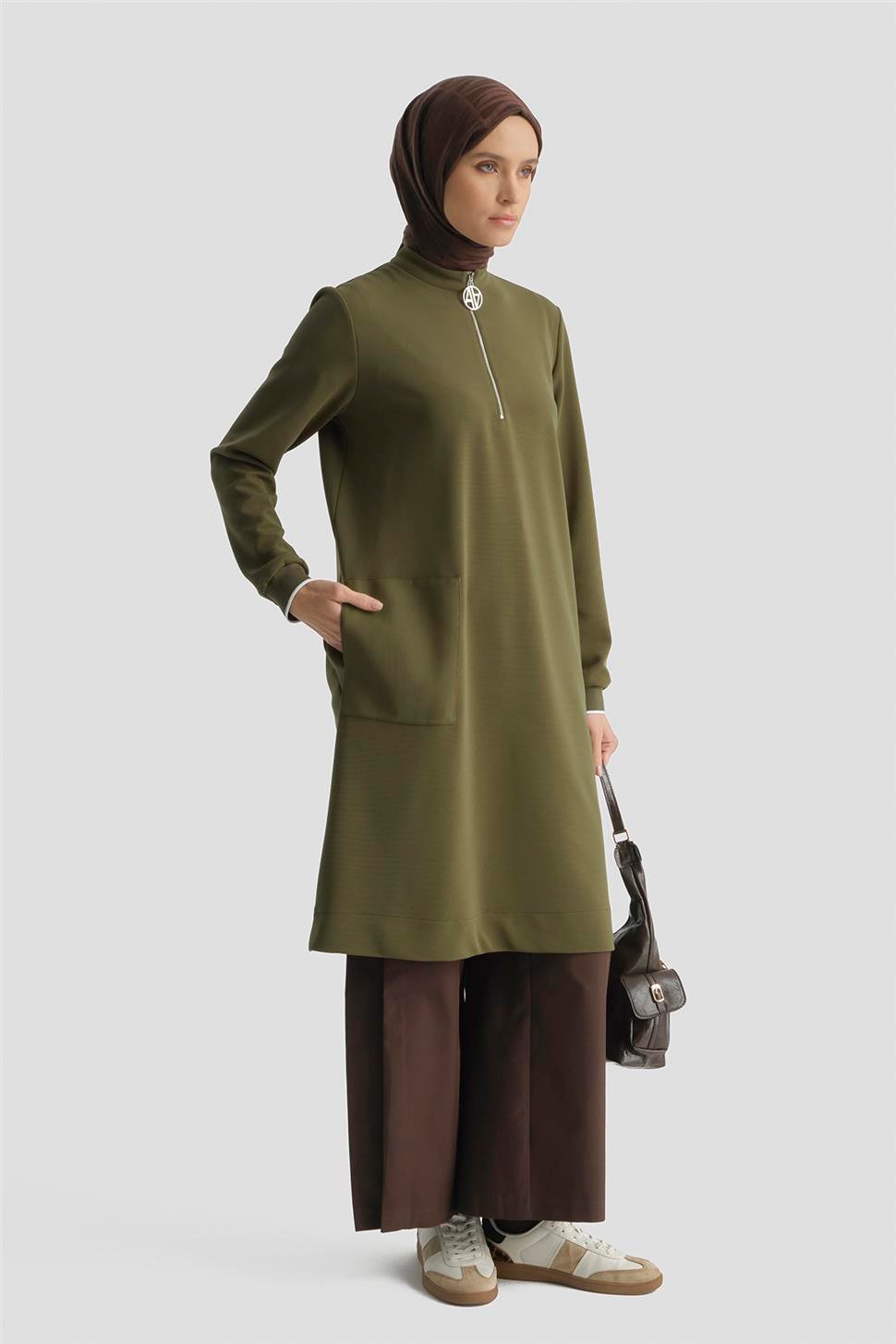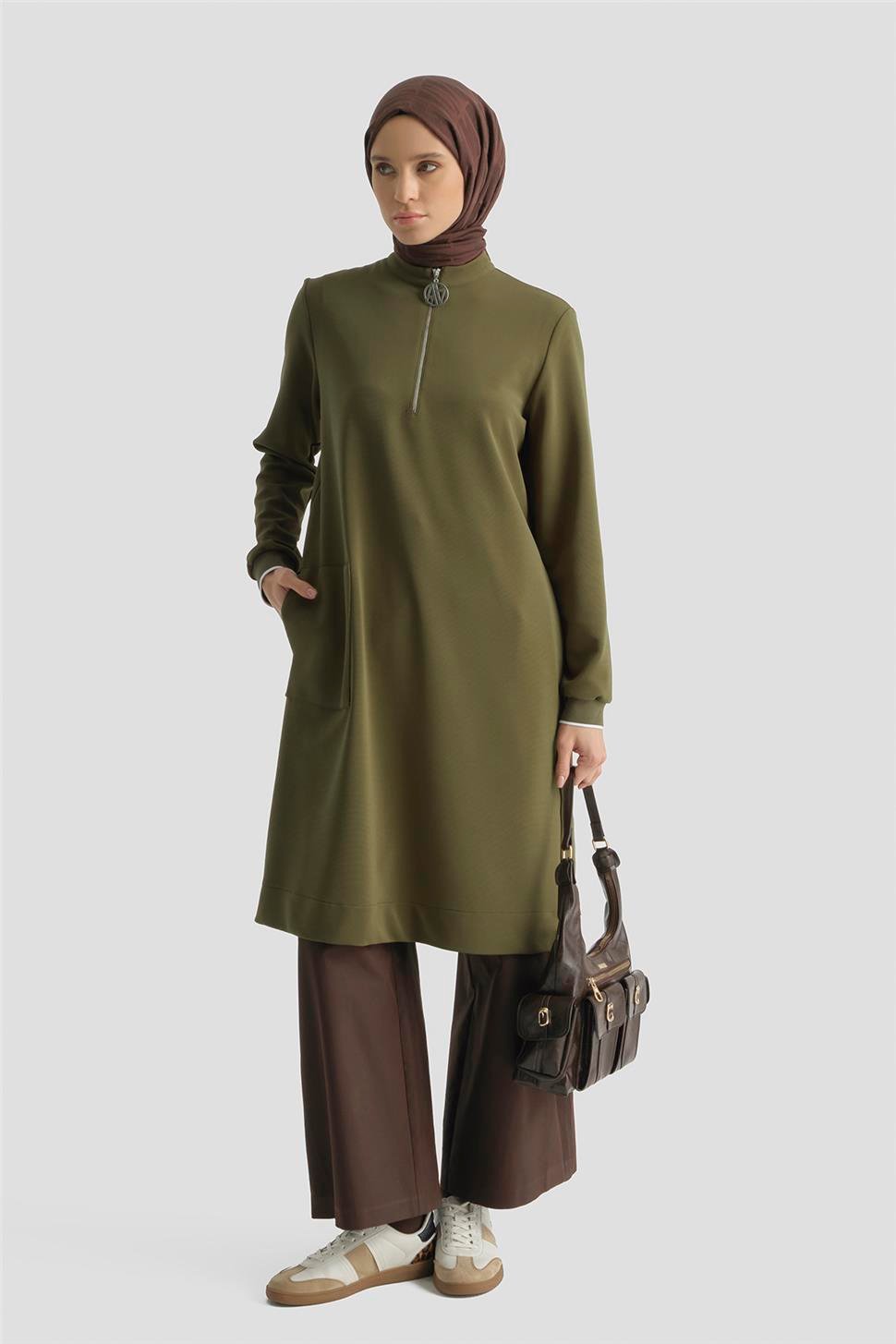 تونيك أرمين بتفاصيل السحاب بلون الزيتون الأخضر
