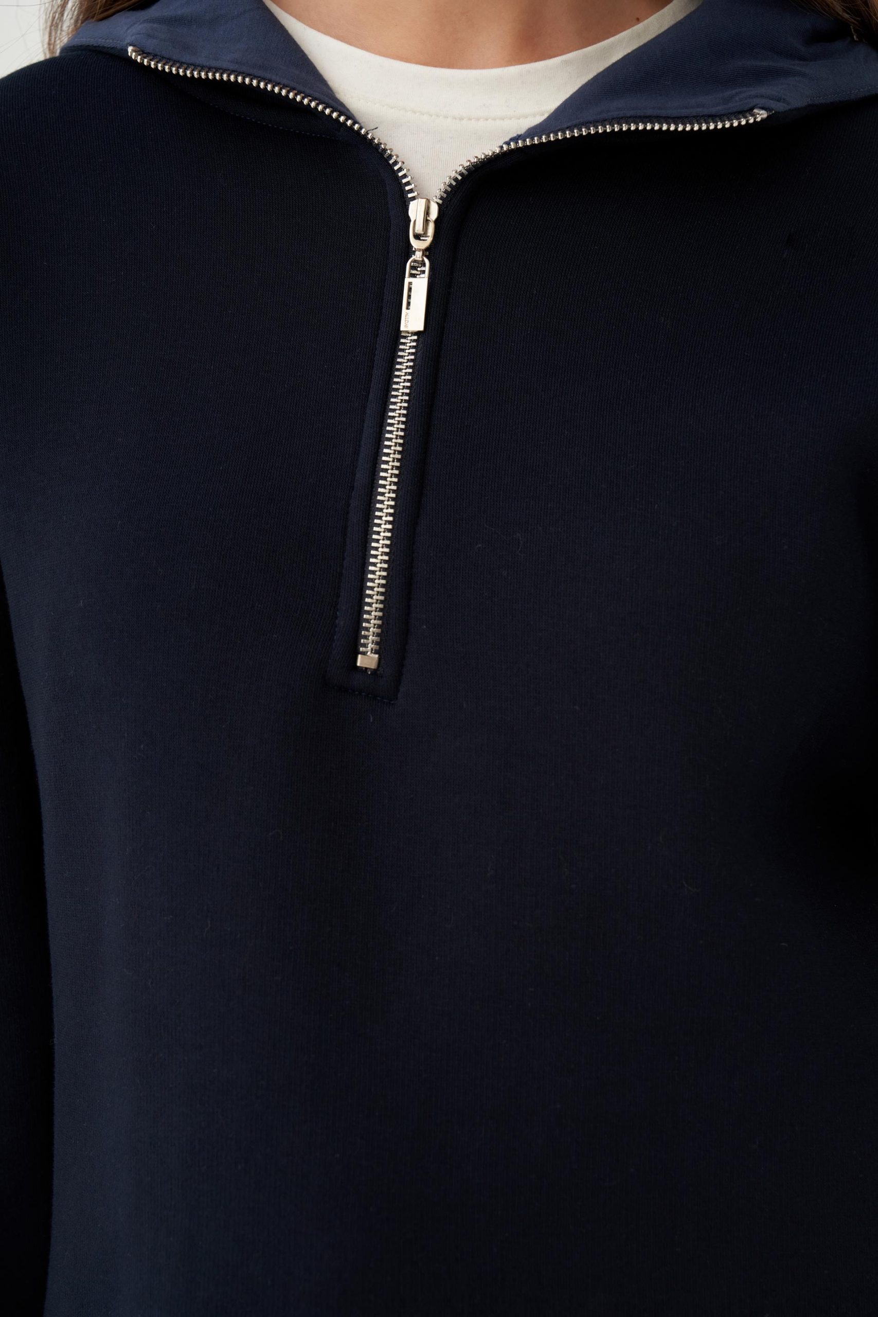 تونيك أزرق داكن قطني بنصف زر وسحّاب