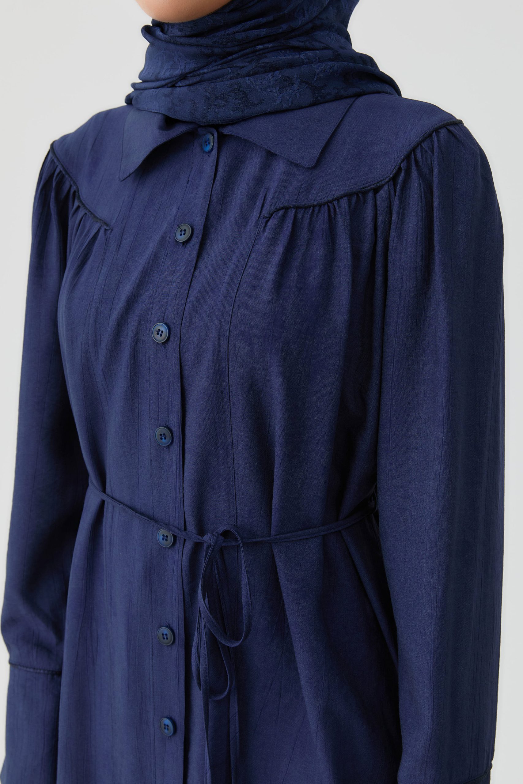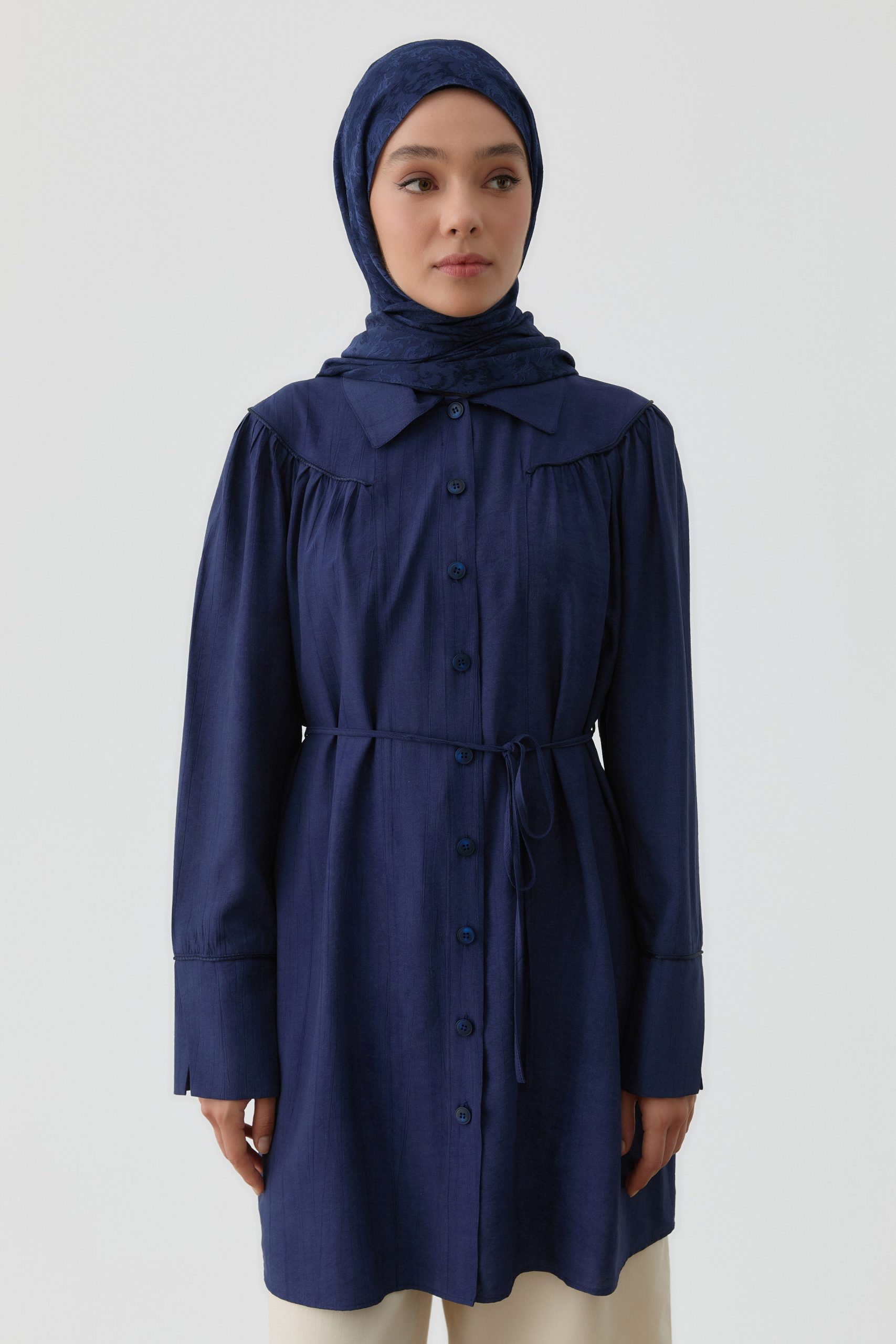 تونيك بتفاصيل كشكشة وطيات – أزرق بحري