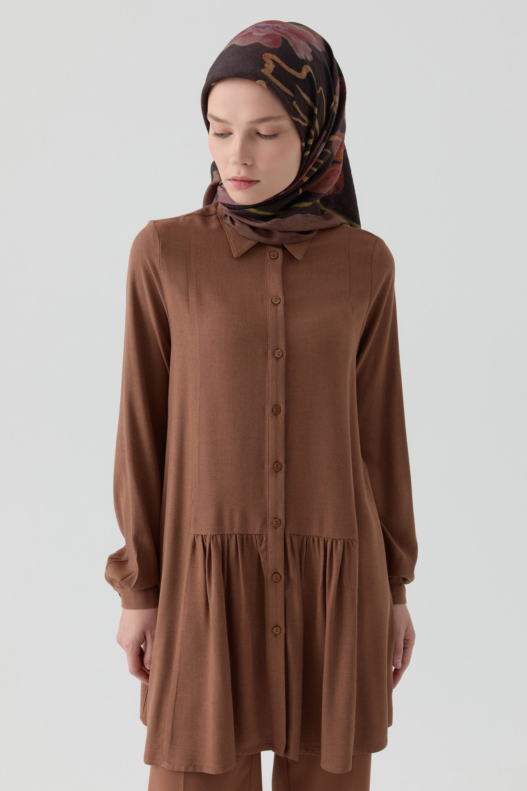 تونيك بتفاصيل مطوي – اللون البيج الرمادي