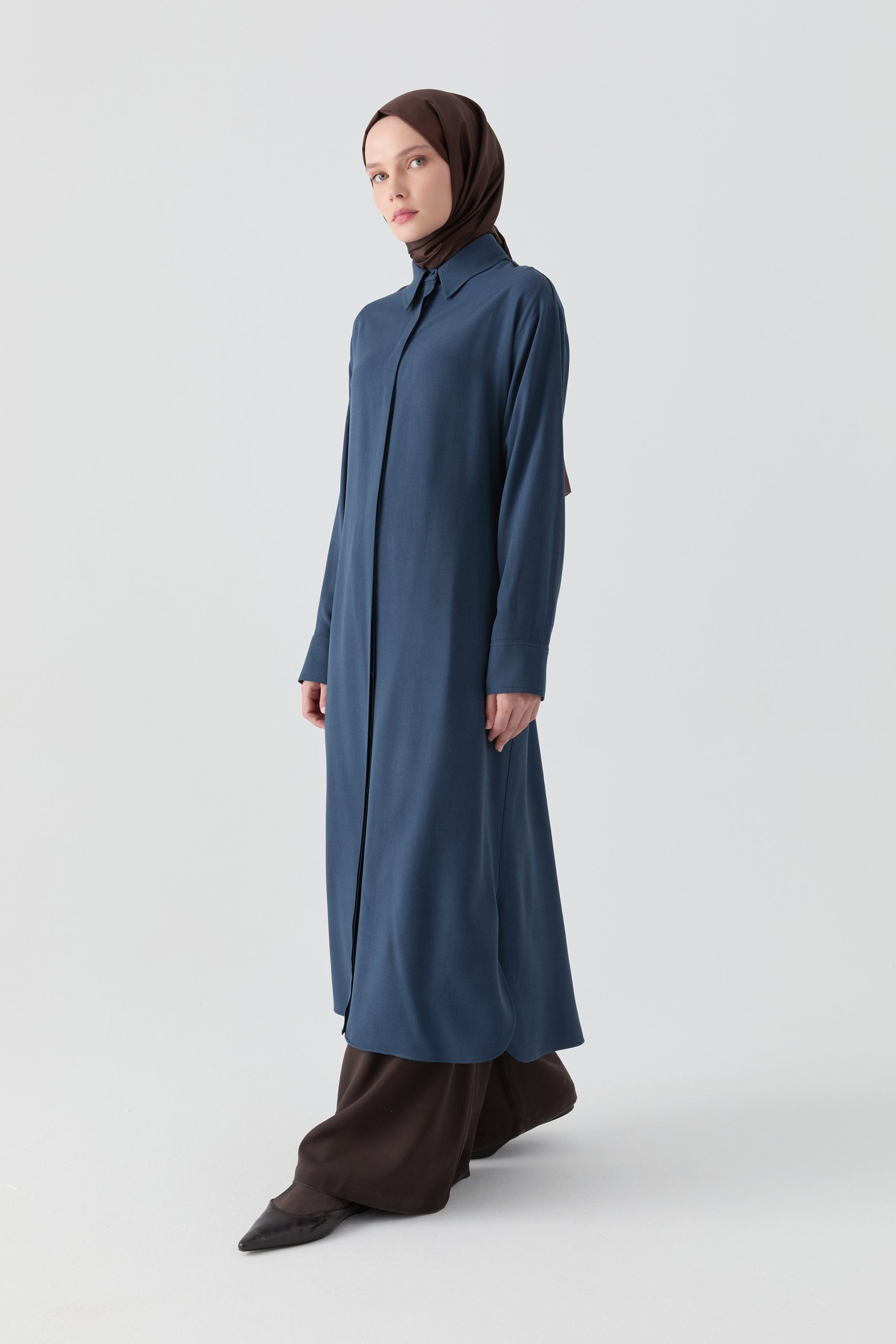 يتميز هذا التونيك بتصميم شق مخفي يمنح مظهرًا أنيقًا ومستمرًا مع خطوط بسيطة تخلق أناقة عصرية. شكله المتدفق يوفر راحة طوال اليوم بينما القص النظيف يسمح بالتنسيق السهل مع مختلف الملابس.