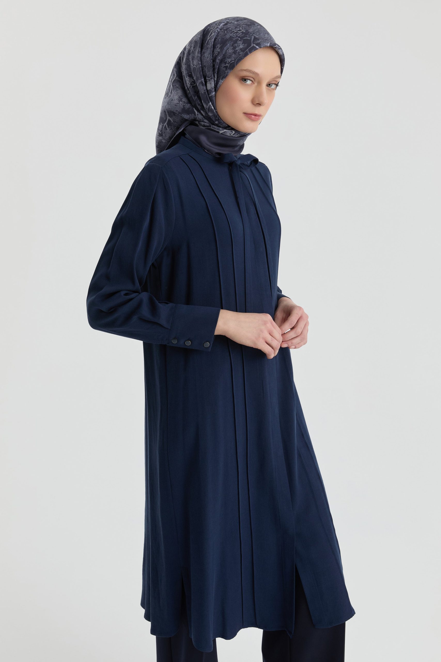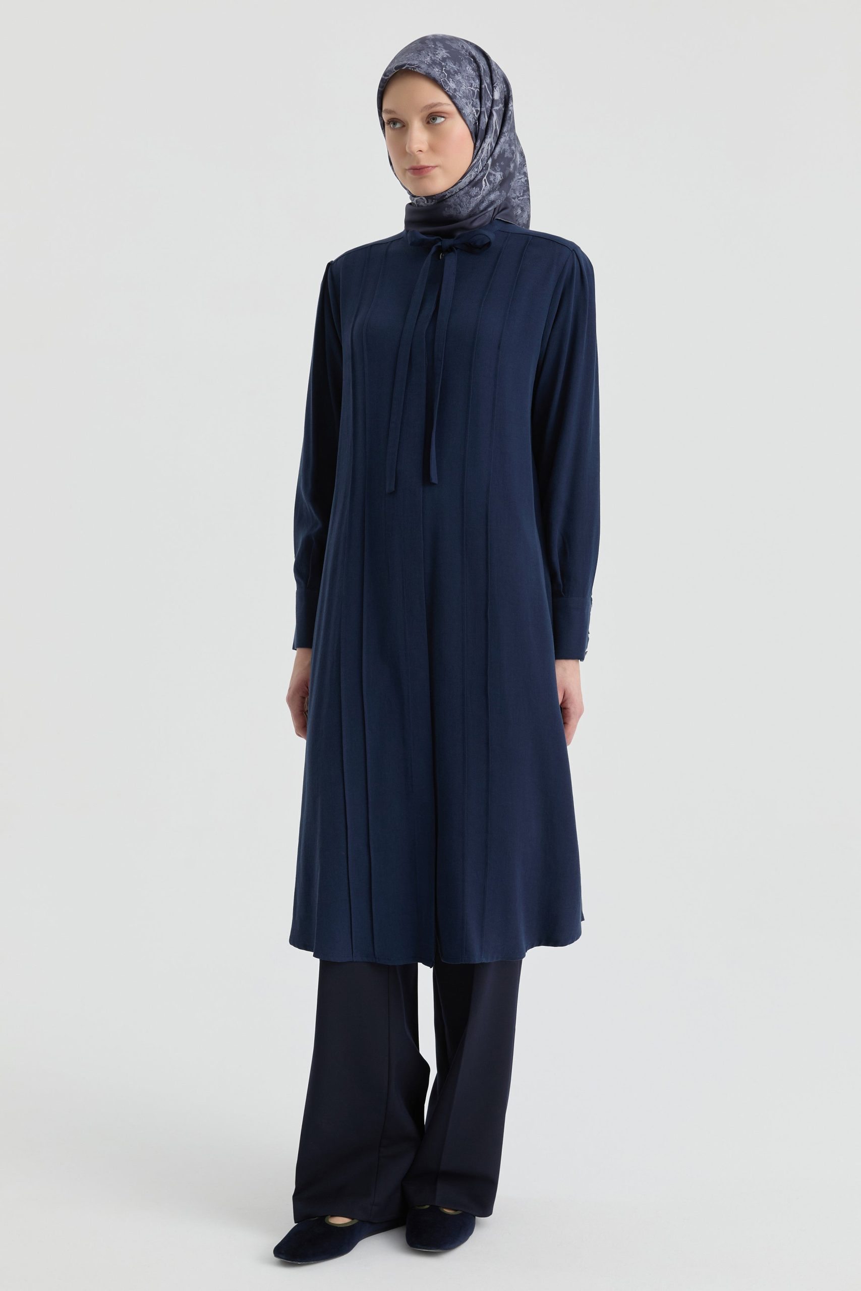 تونيك بتفصيلة رباط عند الياقة – أزرق بحري