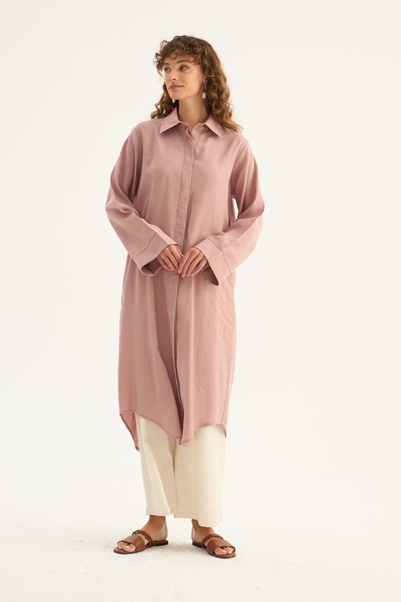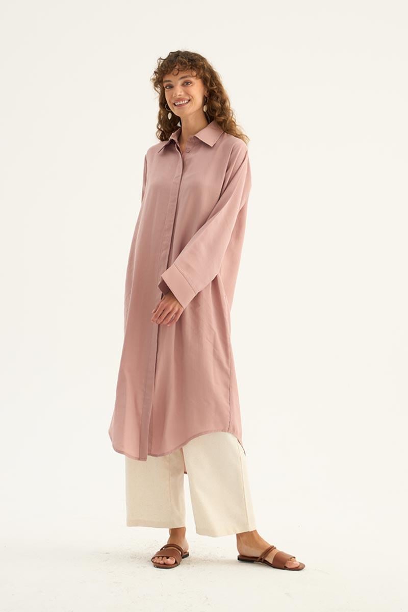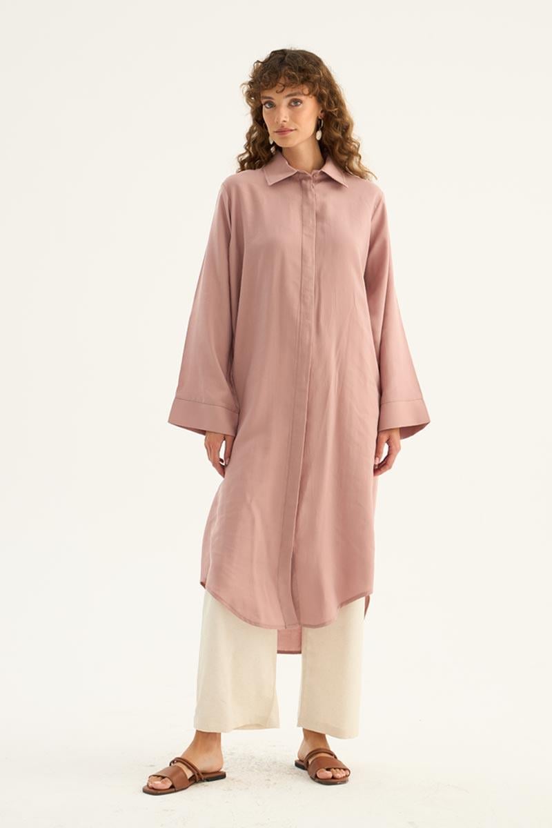 يتميز هذا التونيك بتصميم شق مخفي يمنح مظهرًا أنيقًا ومستمرًا مع خطوط بسيطة تخلق أناقة عصرية. شكله المتدفق يوفر راحة طوال اليوم بينما القص النظيف يسمح بالتنسيق السهل مع مختلف الملابس.